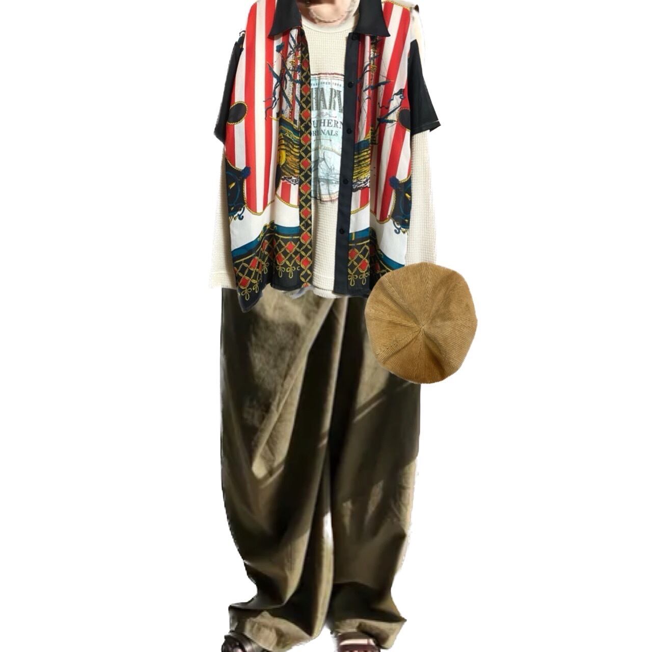 ラスト、コーデ1950に、よせました、インナーワッフル※当店リメイクで、トラッドミックス、