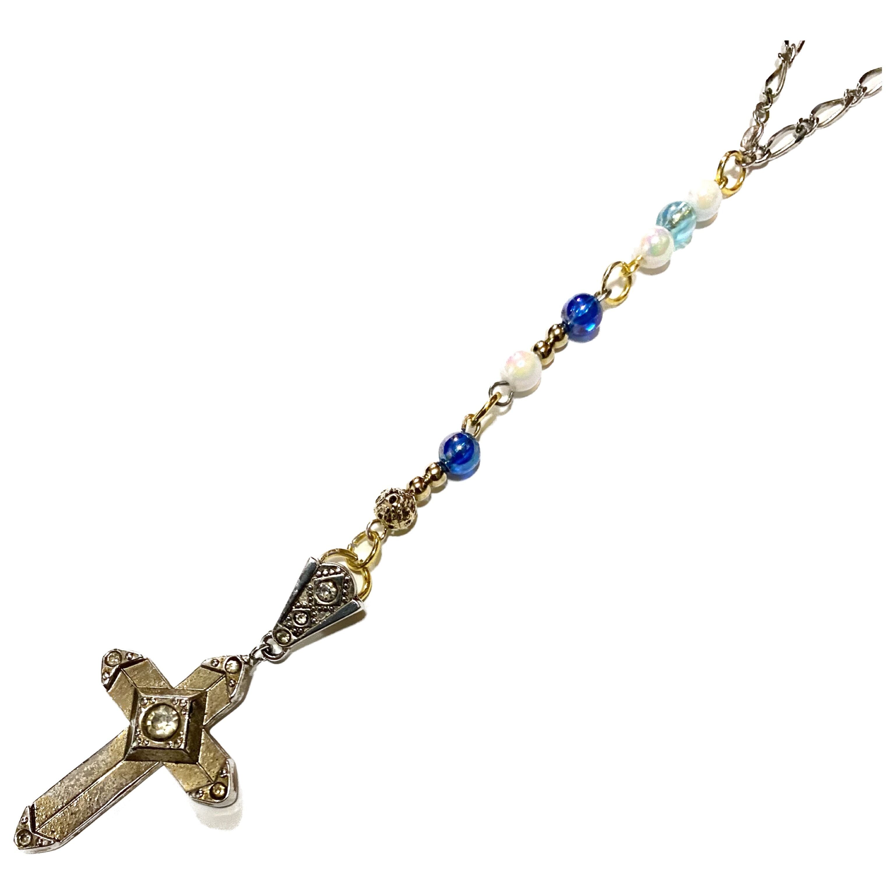 70s使用 ハンドメイド シルバー65ロザリオ gカン ブルーアイ オペラネックレス
