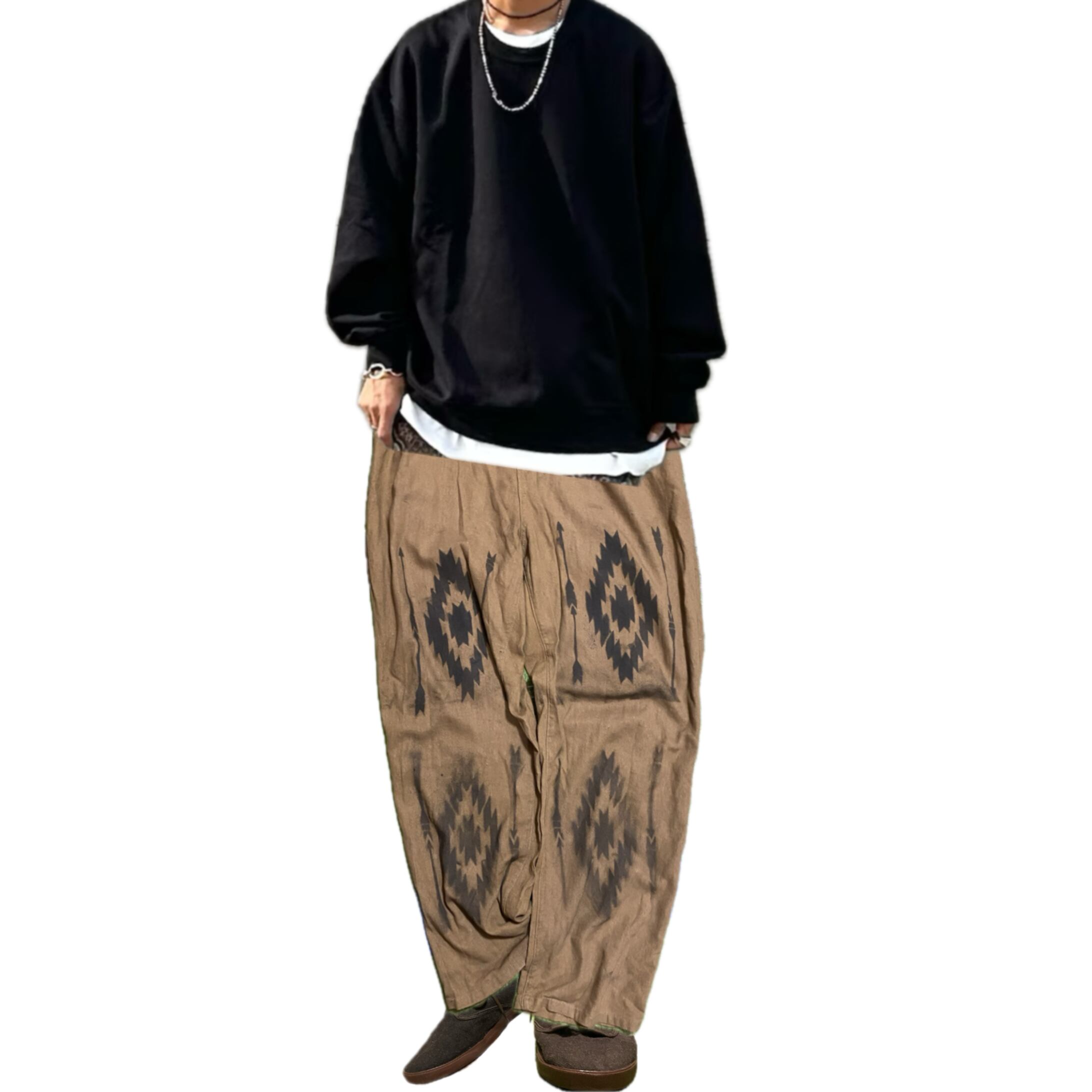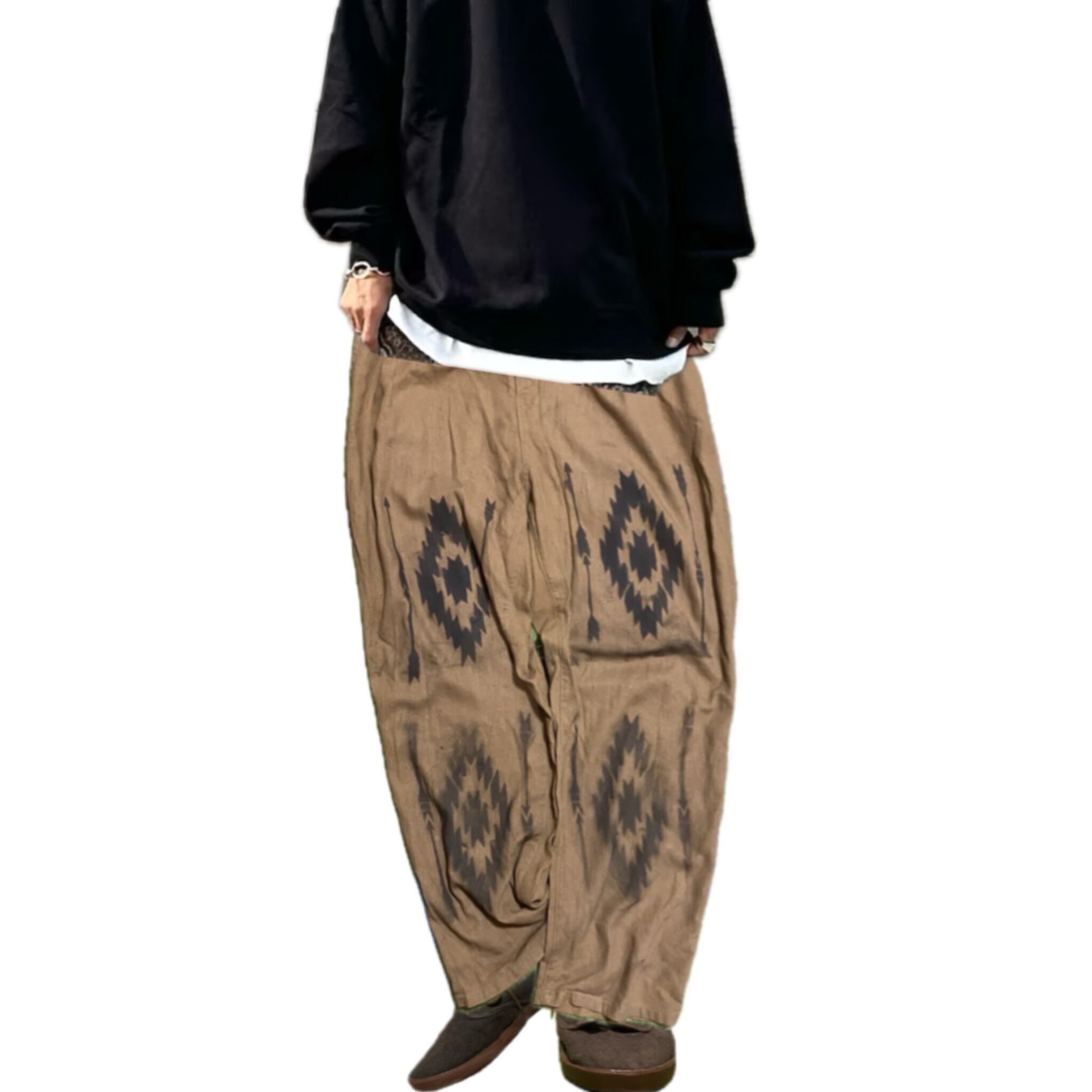 ゆるっとしたストレートのボトムなので、独特の脱力感があり、さらにwestも調節できるし、ベルトループもあるので、どなた様も大体対応するのが魅力的。