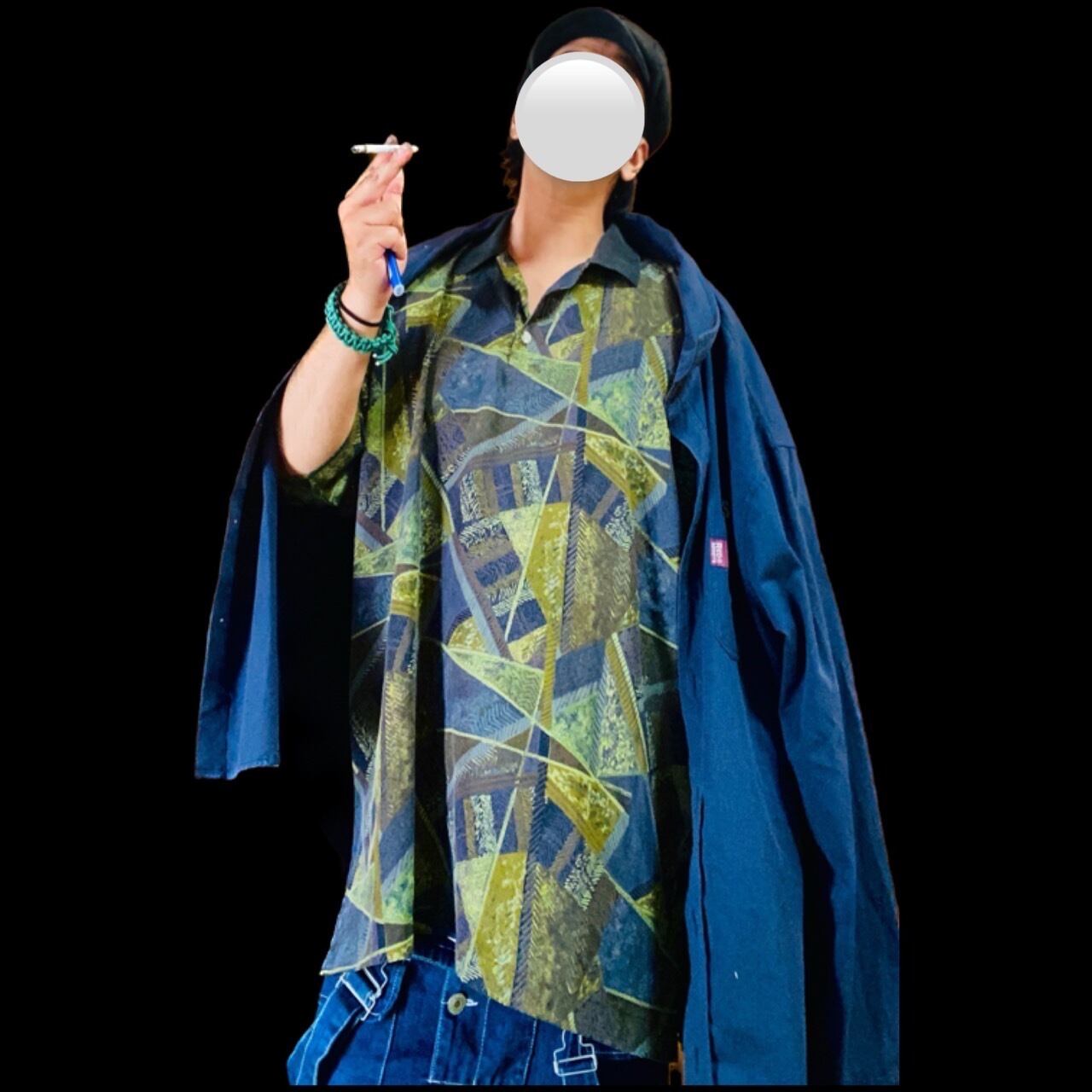 70s SP素材 サイケ幾何学柄 over size ポロシャツ