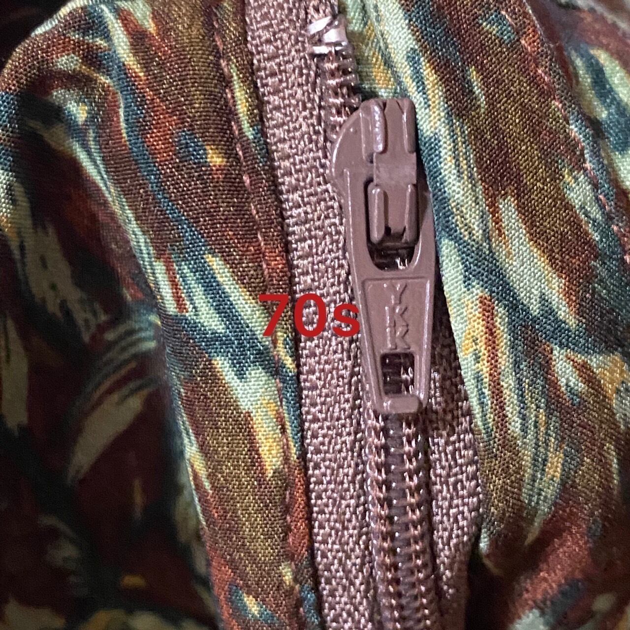 何でこんなに、70sは、カッコいいんだろう、ウエスト調節可能。ベルトループ、棒zip プリントののりと、タック、もうこれだけでvintageとわかりますが、