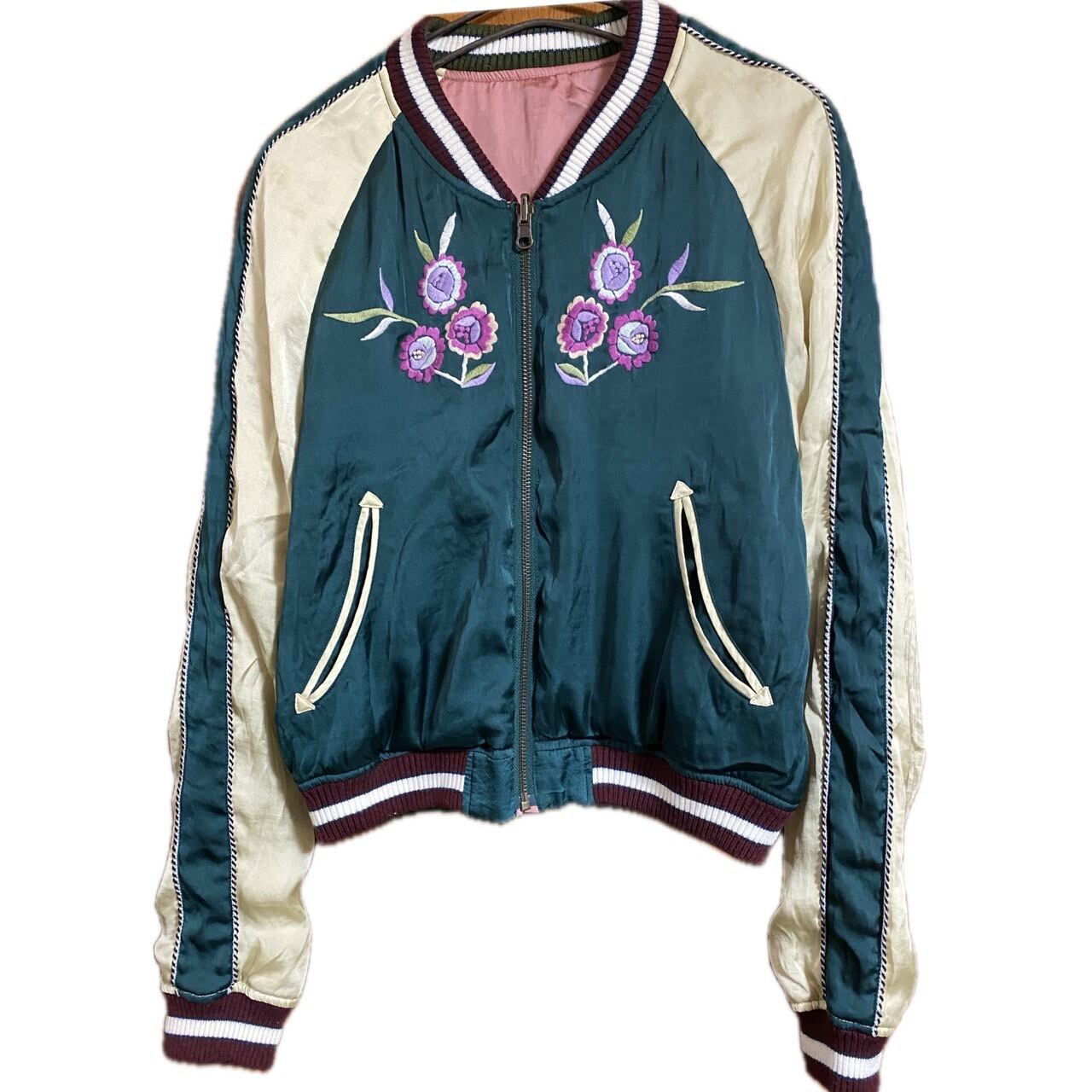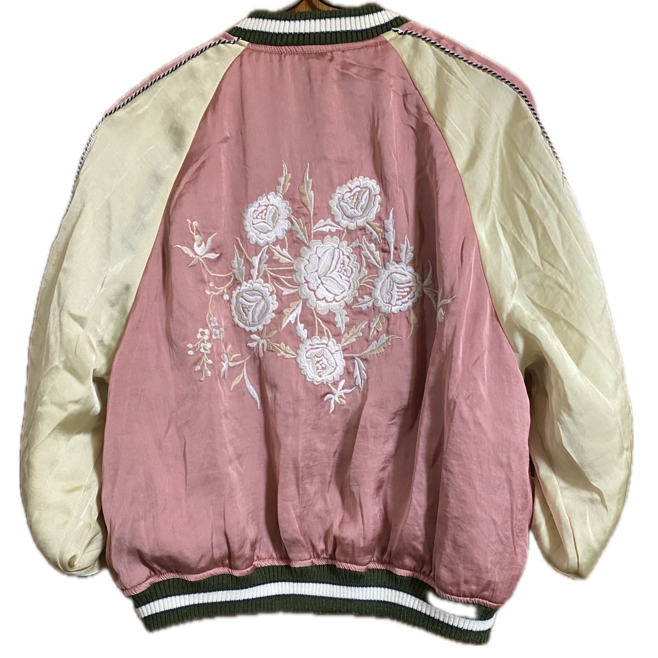00s reversible サテンスカジャン 丈短 刺繍スカジャンM-L