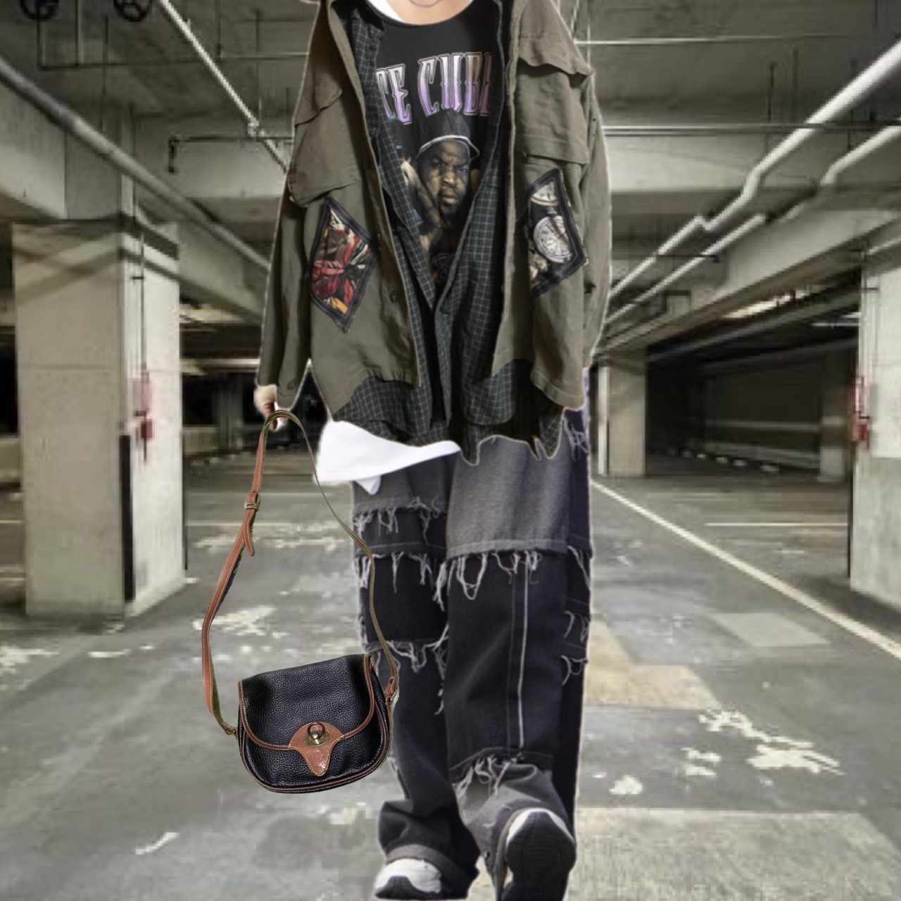 世界に一つのミリタリージャケットを、ネルシャツ仕込み、ヒップホップT