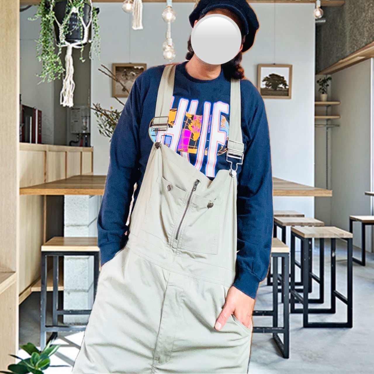 ワークミックス、アメカジ、とはば広く対応する、さらに大き過ぎず小さすぎないとサイジングがオーバーオールとの相性は抜群にいいです。少し季節が肌寒い時期とかの場合とか寒暖差がある場合は上から軽く羽織るだけでプリントが破壊力を増します。そして前後に施されたプリントが1枚で主役重ね着しても主役です。後は歴史をご覧ください。