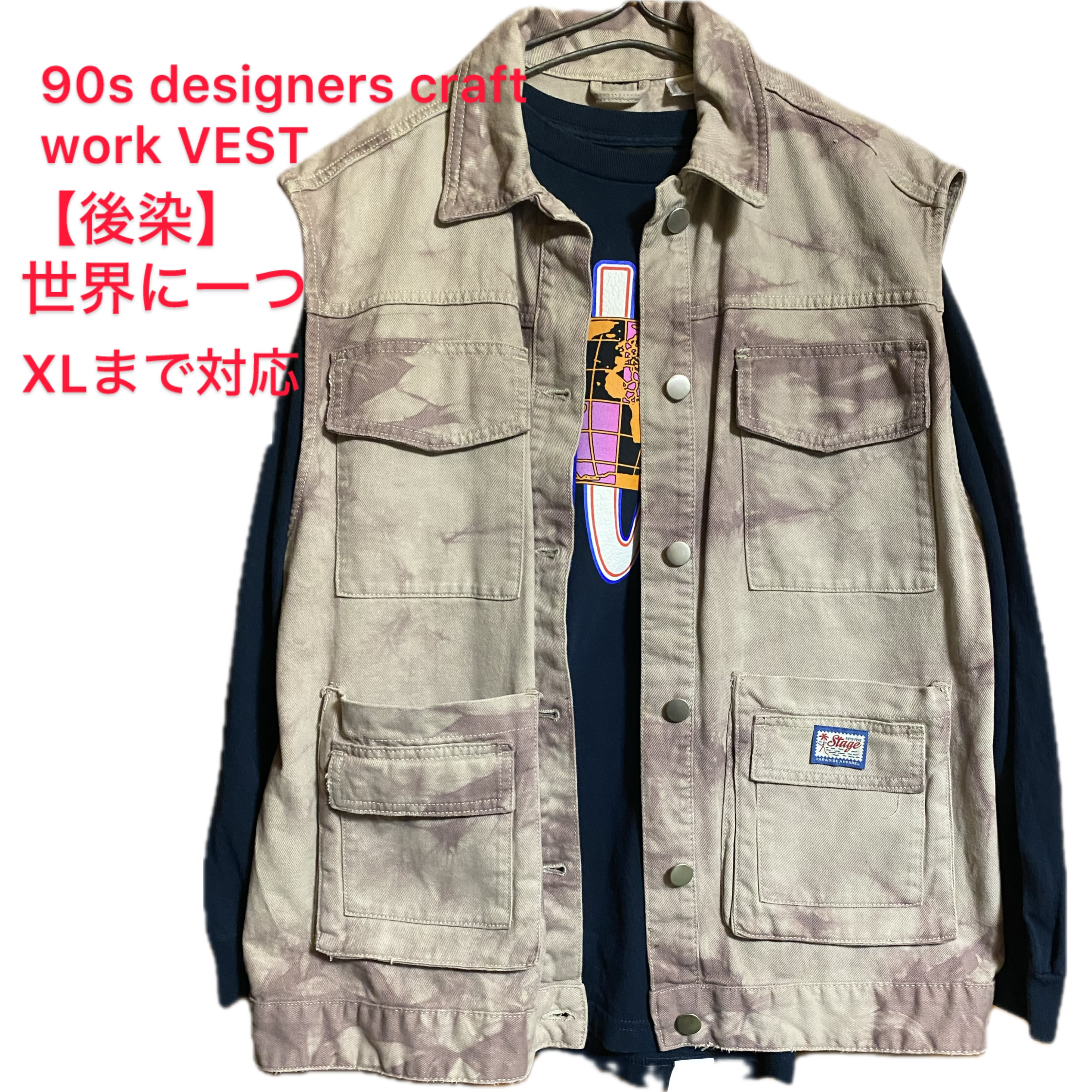 90s 新品同様 デザイナー 後染め 1点物極上ワークベスト世界に一つ