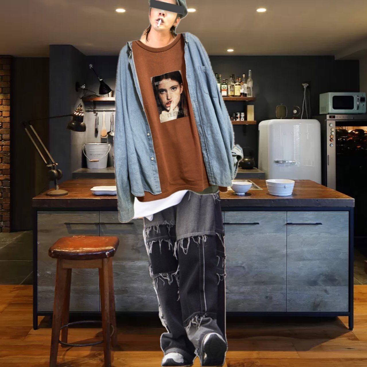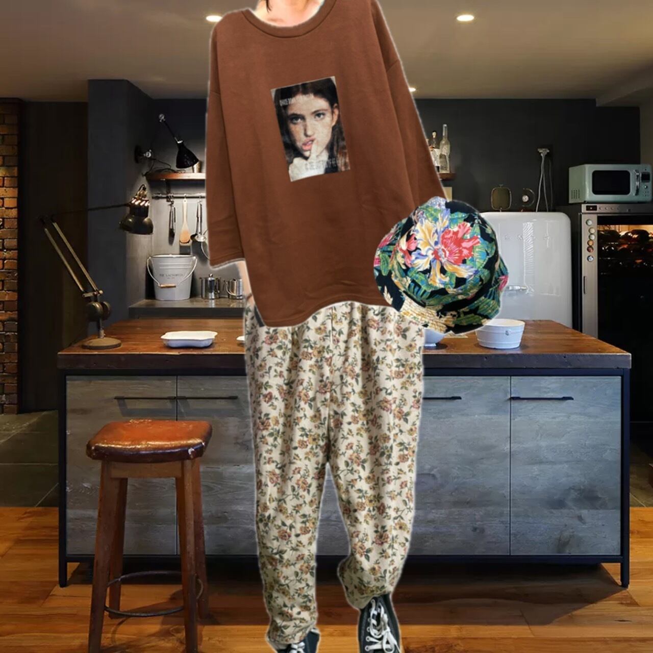 インナーにスエット仕込みプリントを見せるテクニックおしゃれアップデートには、最適です、