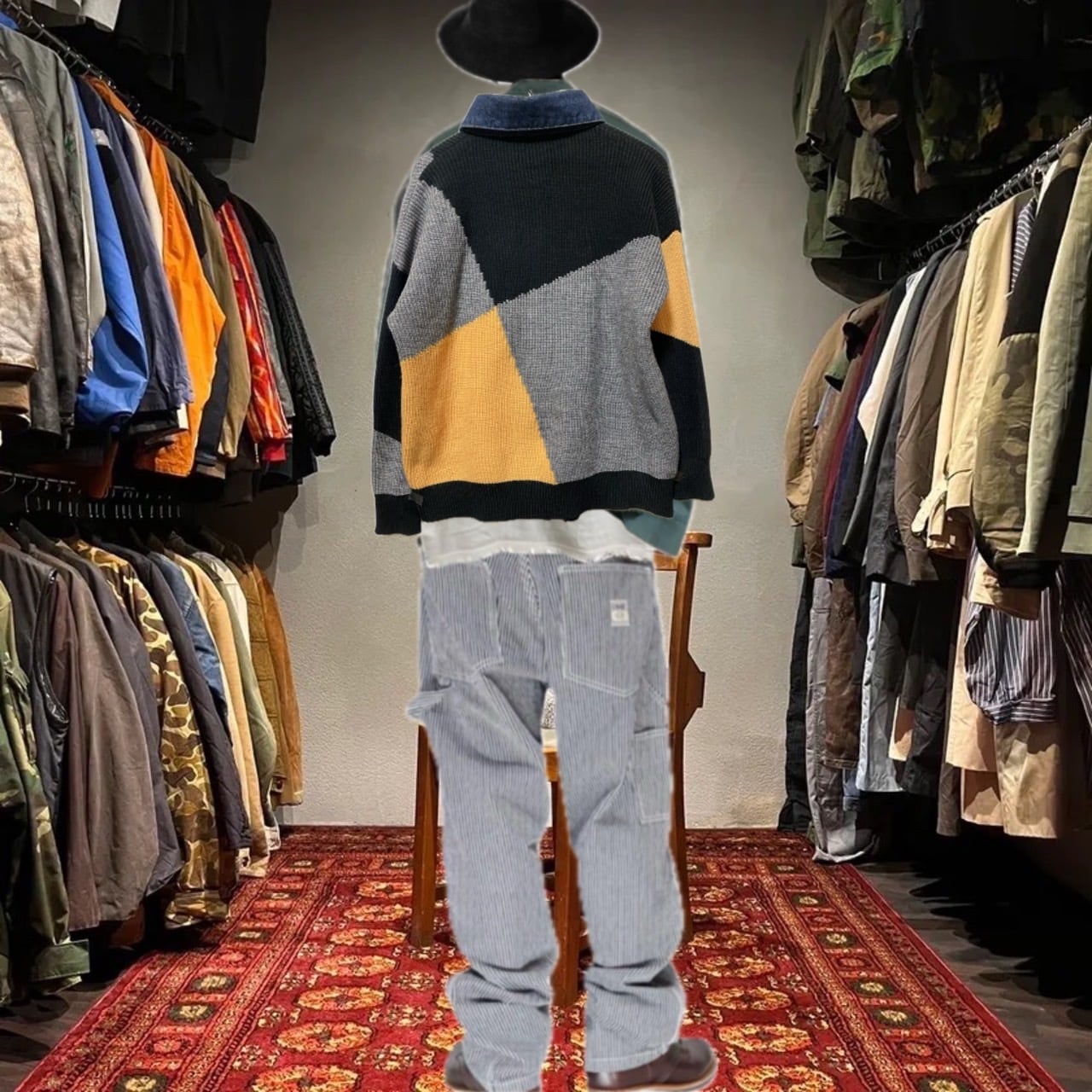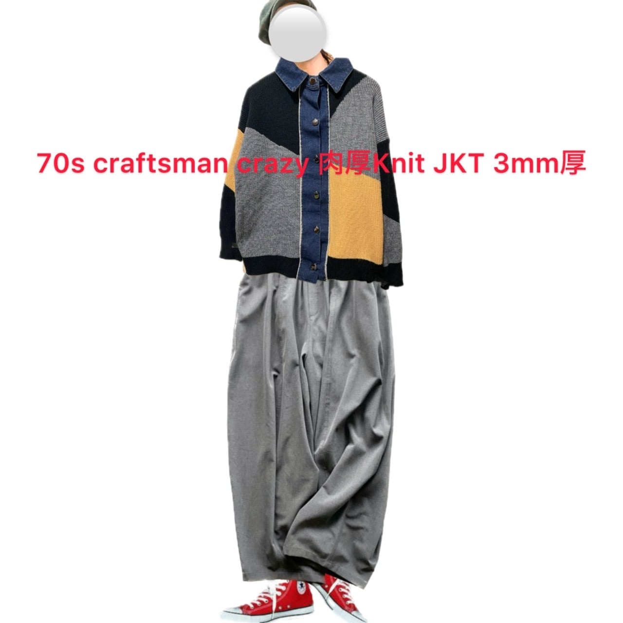 70s craftsman made crazy 3mm Knit ジャケット肉厚 1点物