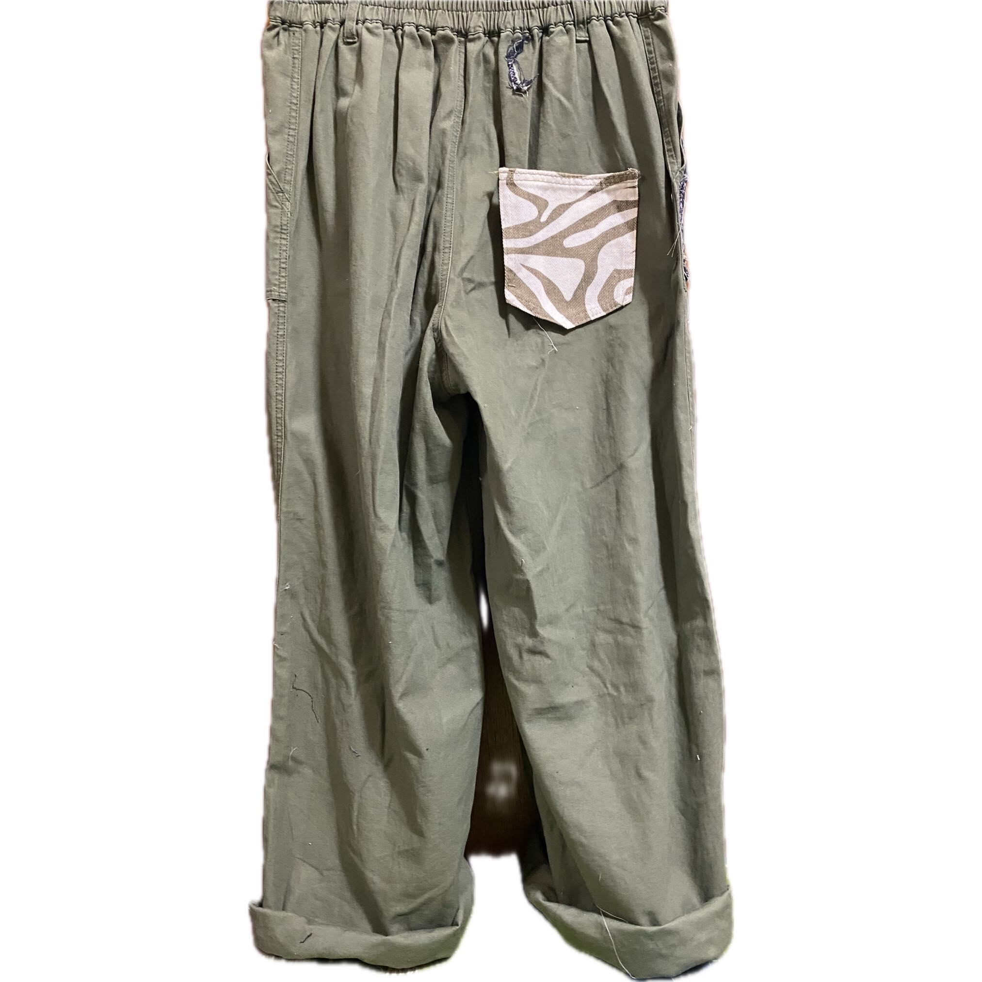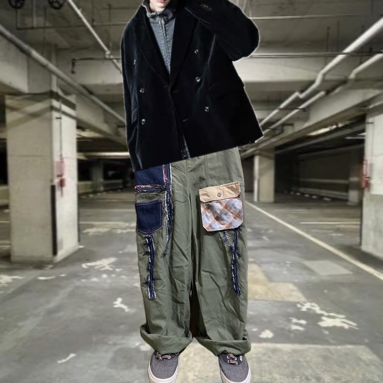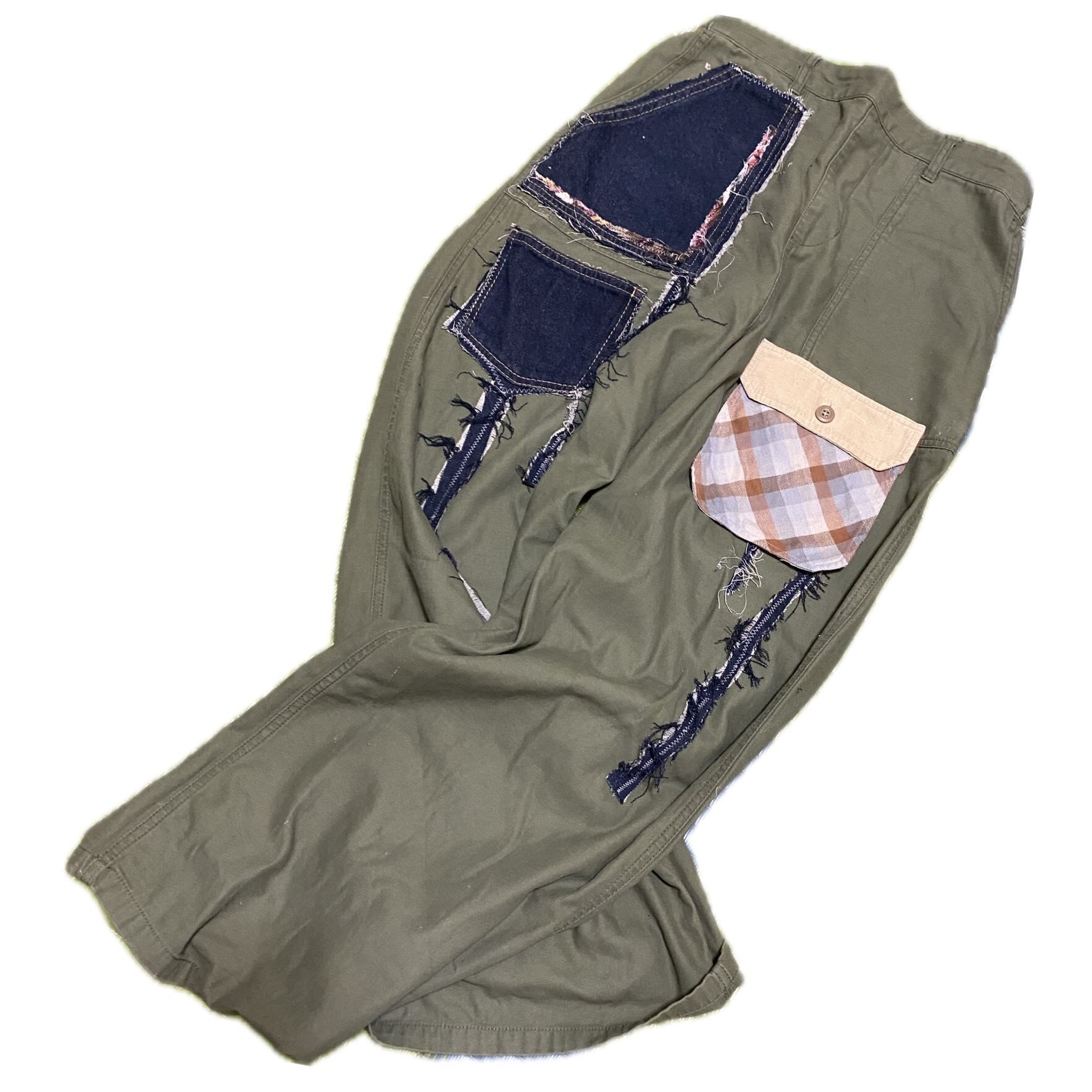 •data 90-00s に、人気を誇った、本来のミリタリーのコーディネートのむつかしさを払拭した。ナチュラルミリタリーと言われる。おしゃれミリタリーベイカーパンツ。僕は大好きなんですが、正直個性が足りないし、ミリタリー色があるのでもっとかっこよくしたくて全てフルカスタムしました。ウェストの調節可能ならばを入れてベルトループも残しております。どなたにも対応するので、下記ポイントは省きます。全て明記してます。