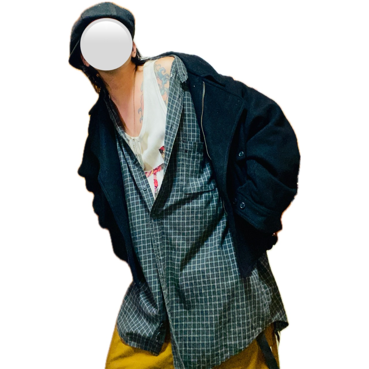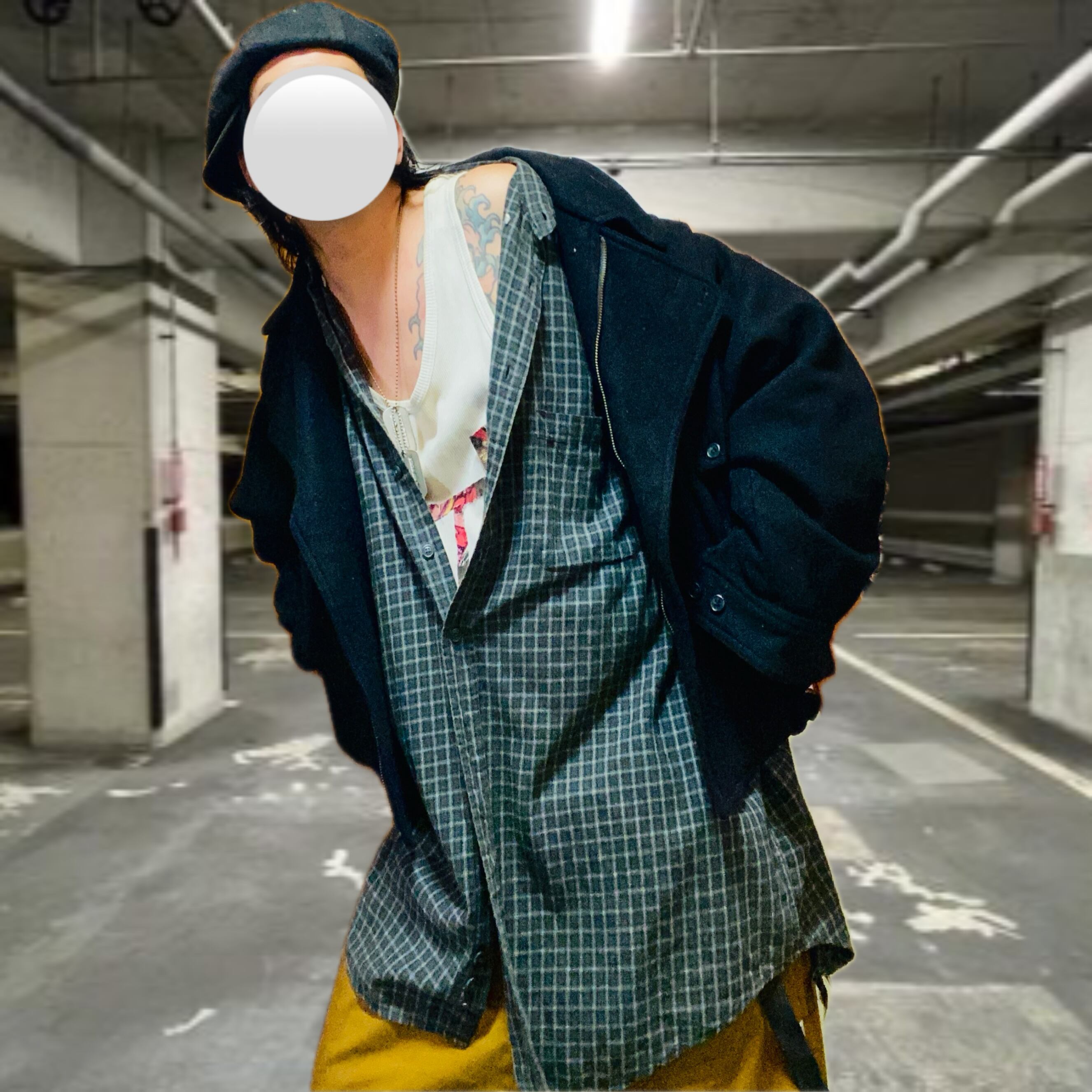 コーデ参考になれば、嬉しいのですが、ビックサイズは、前締めもいいですが、重ね着楽しむのを、推奨します、インネルシャツ