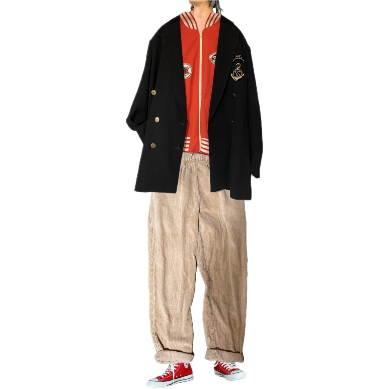 インナー、スニーカーを、色あわせする、私得意のてく、コンバースで、カジュアル感だせば、嫌味くさくない、です