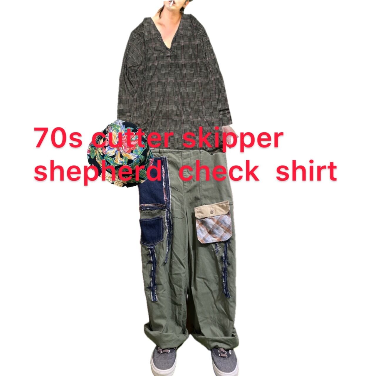 70s 極上品skipper shepherd check 8分 シャツ M-L