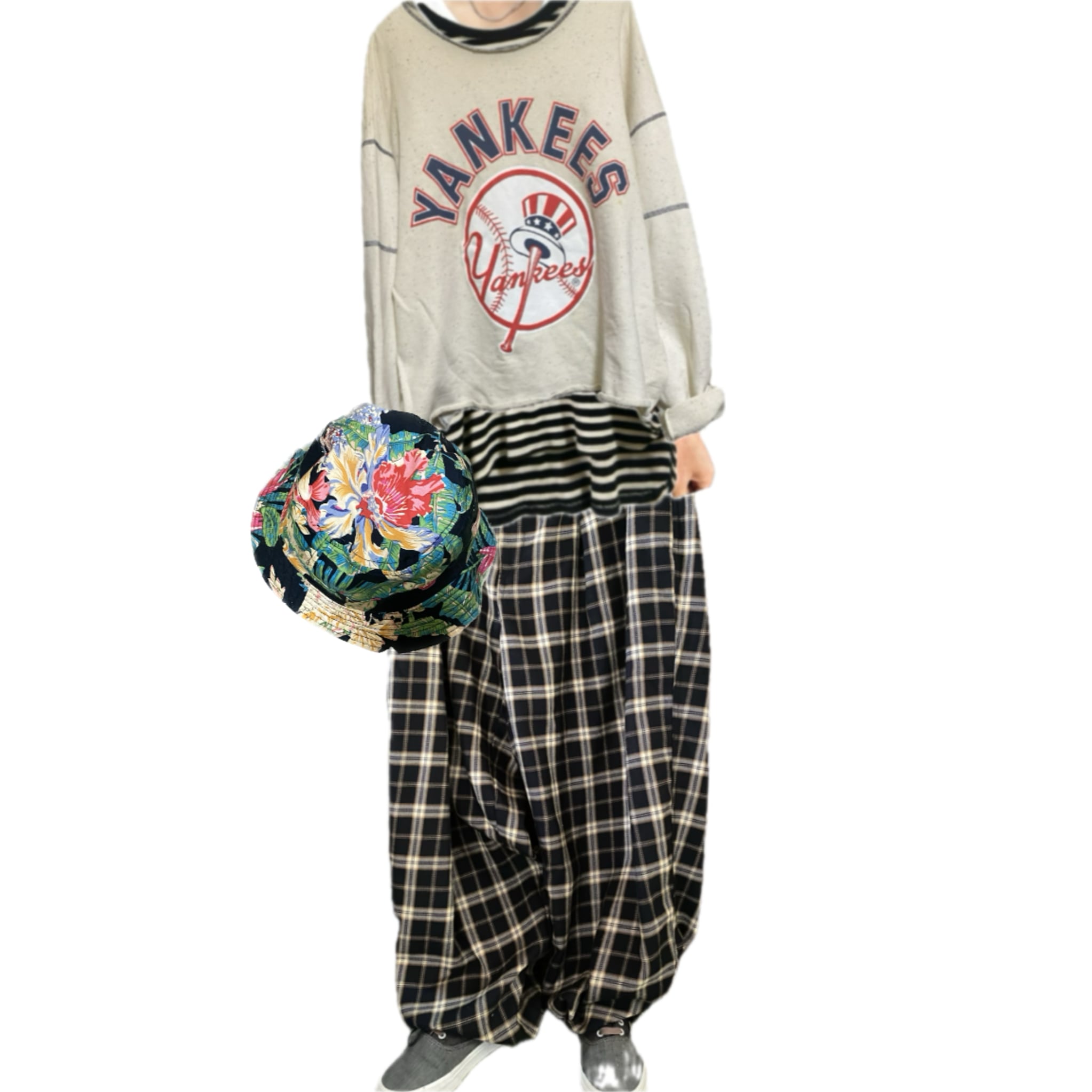 激レアのプレミア確定の1着をゆるだぼっとしたヨーロピアンスタイルのチェックをトムにレイアウトを決めて楽しむ。さらにスウェットなのですが起毛無しカットソータイプなんで、年中活躍しますし、オーバーステッチがおしゃれすぎます。またすごく希少価値が高いのは下記をご覧ください。