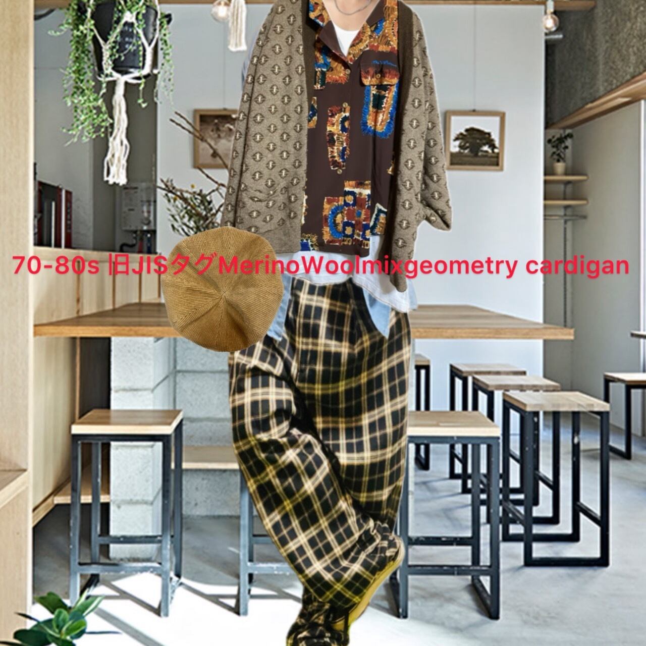 70-80s 旧JISタグMerinoWool 幾何学 cardigan