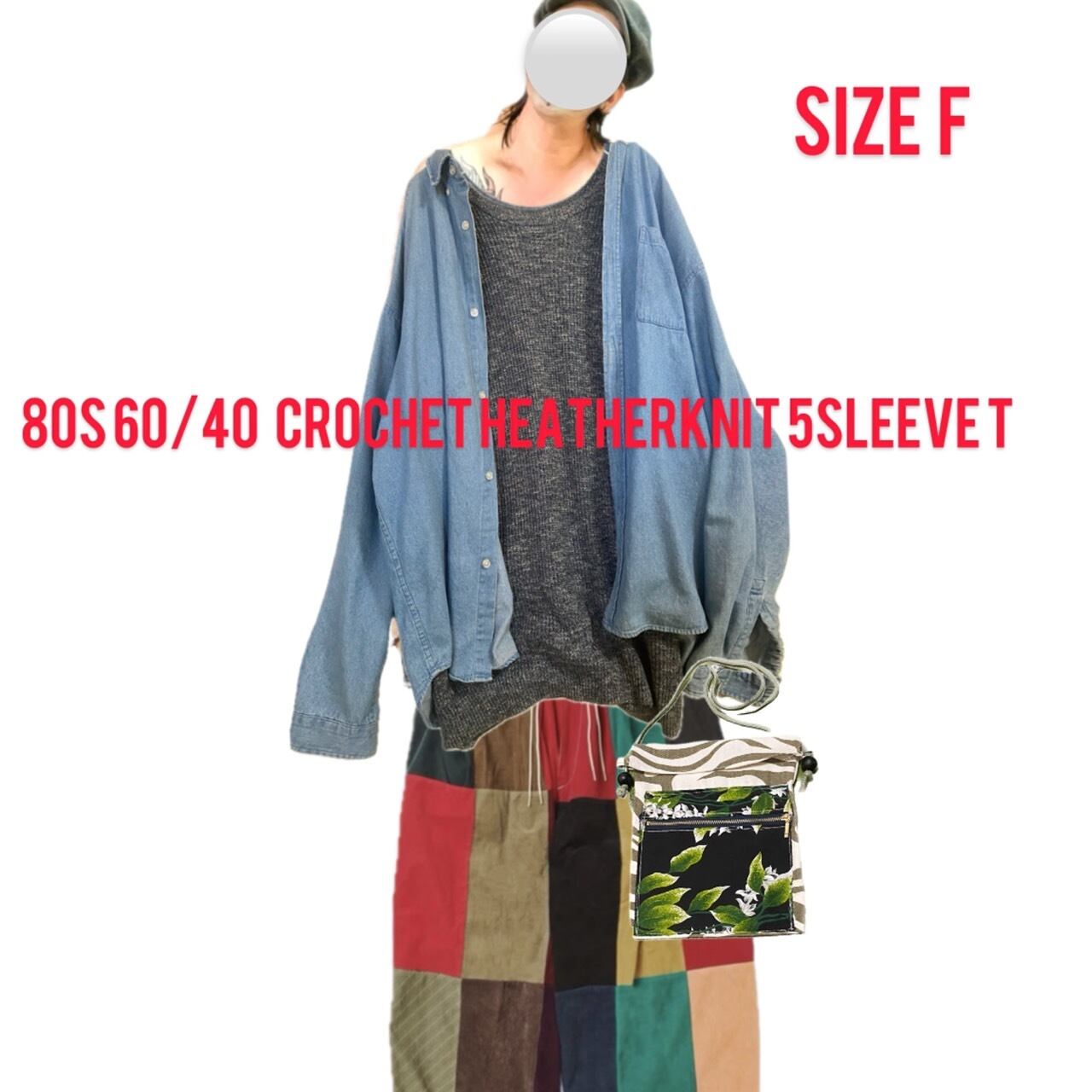 80s order made クロシェ編60/40 5分袖 ヘザーKnit T
