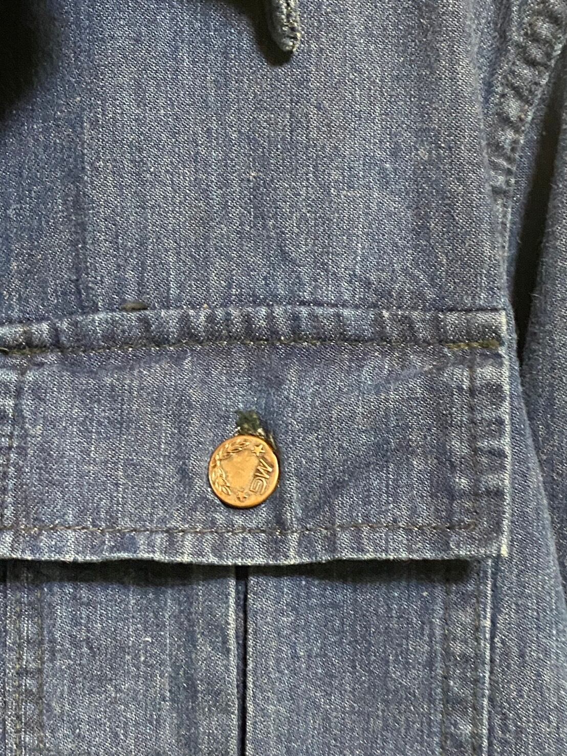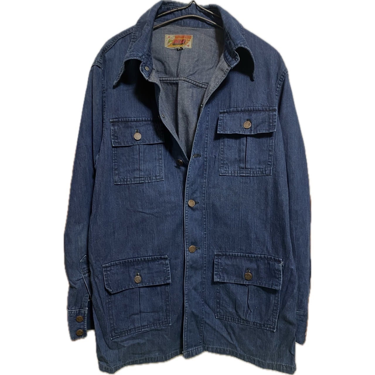 【MG】の、デニムサファリカバーオールジャケットです。60.70年代頃の商品で