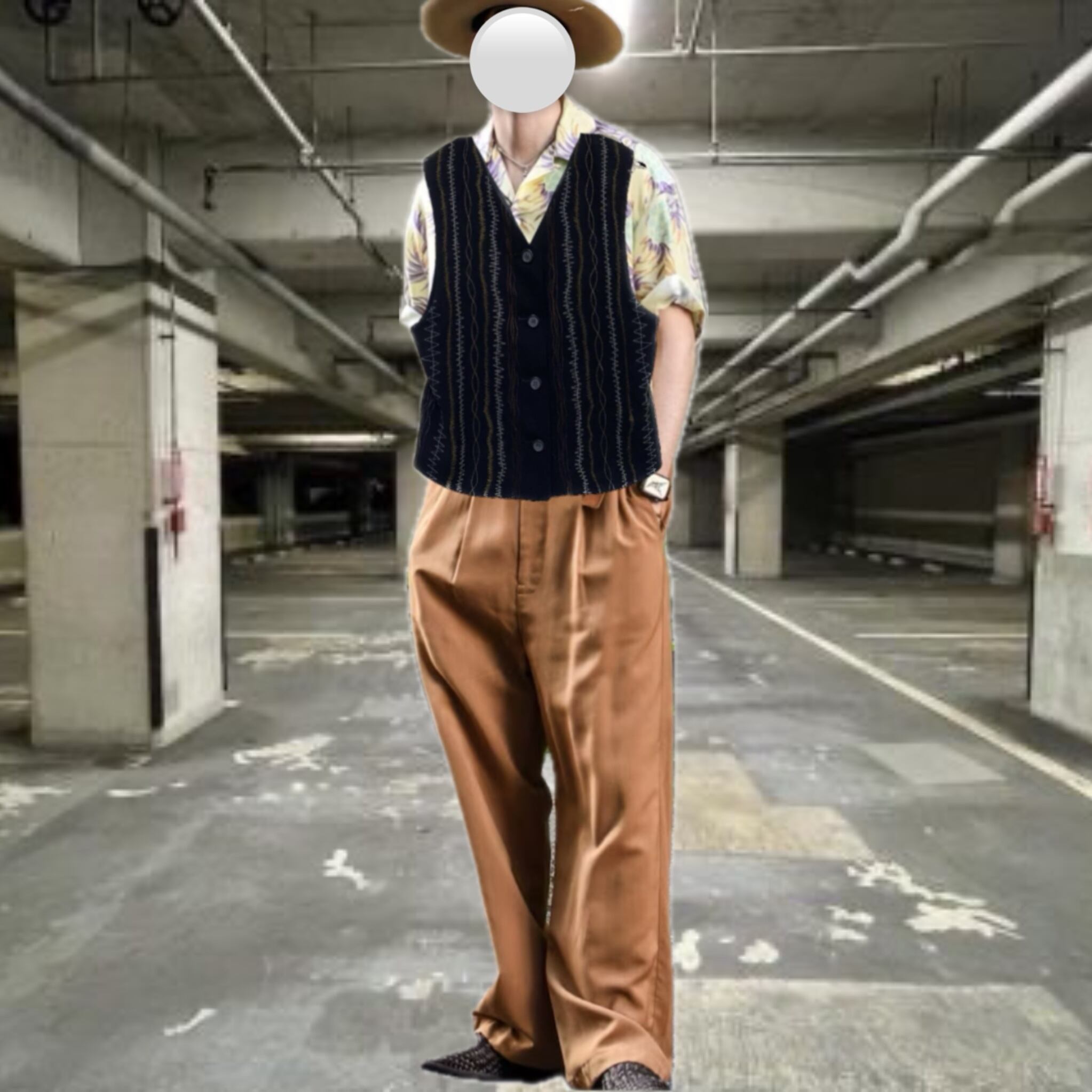 大人の色気すらただようベストは、スタメン間違いなし、サラッとタフに、ワークパンツに、柄シャツロールアップで、きめてみました、この上から、ジャケット羽織っても、かなり、カッコいいですね、