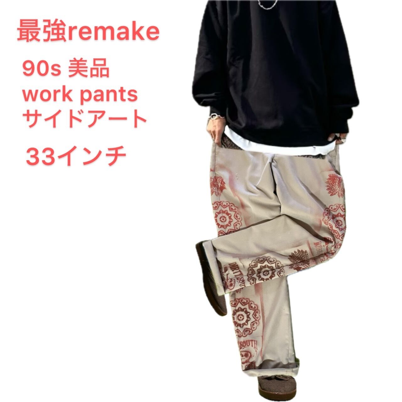 90s リメイク 33インチ 新品同様 ワークパンツ サイドアート
