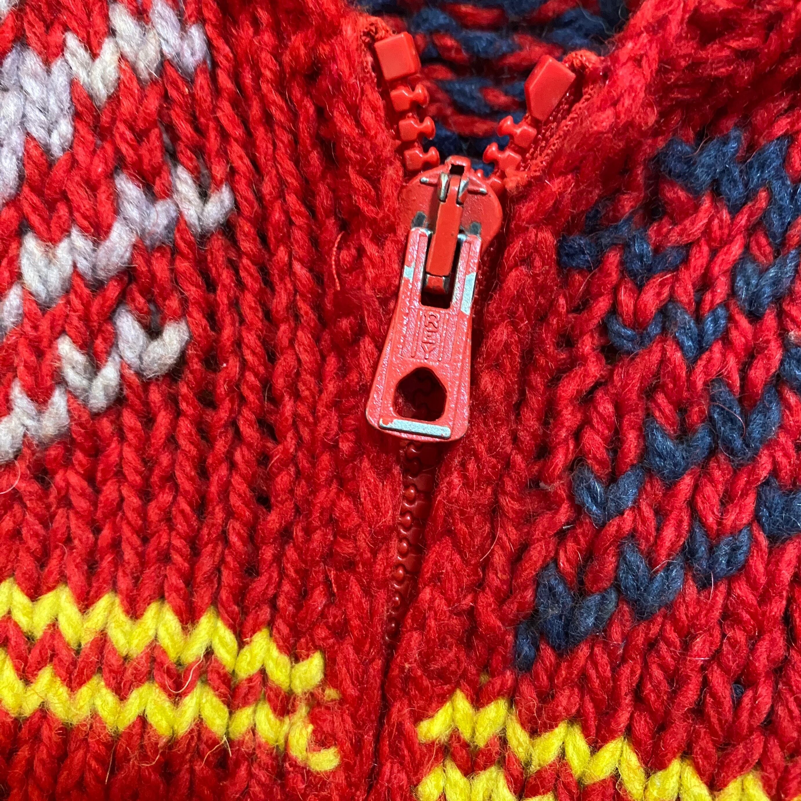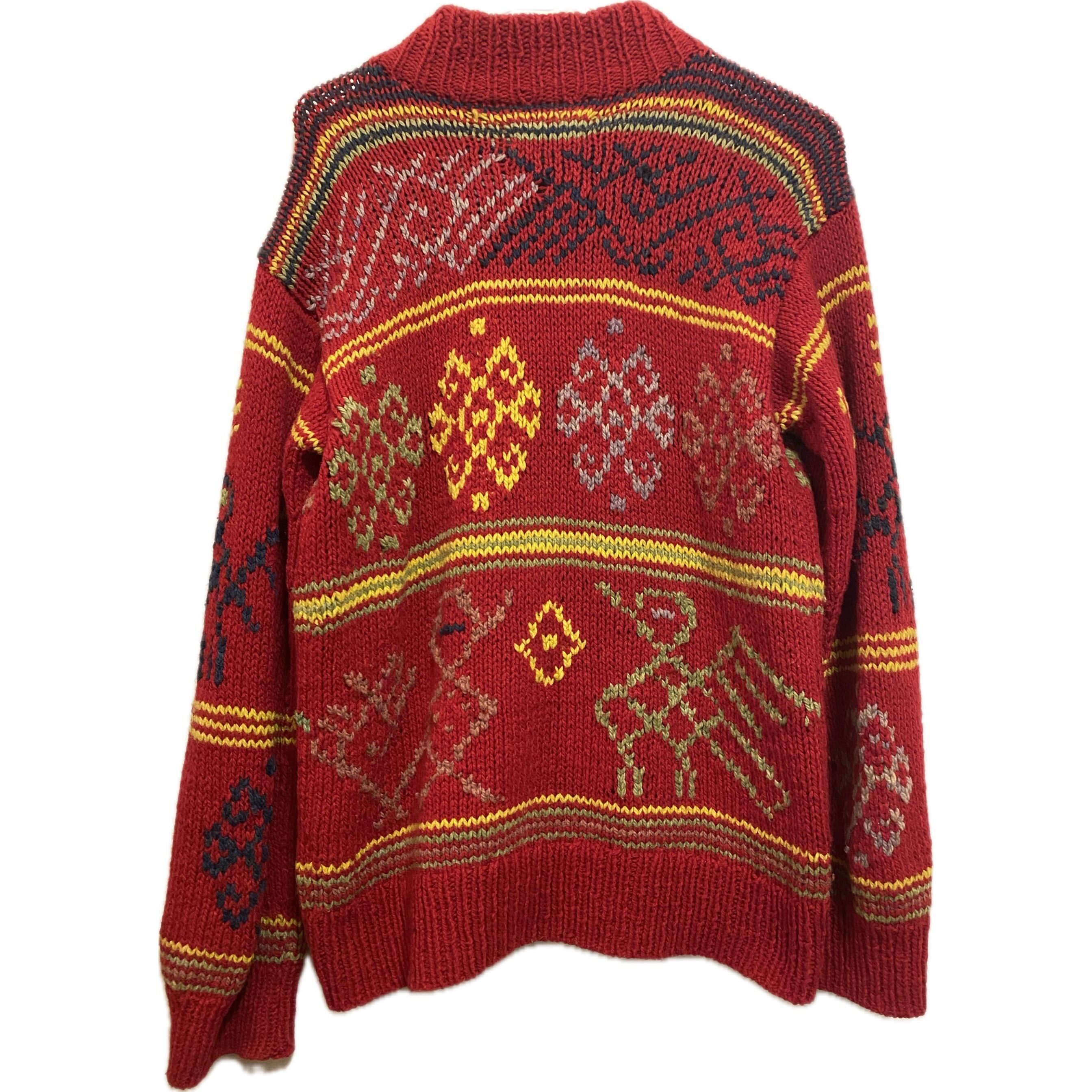 独自のデザインと洗練されたシルエット! 90年代といえば、個性的なデザインが流行した時代。このカウチンもご覧の通り、サンダーバードモチーフの配色が目を引き、見る者を惹きつける存在感があります。かっこいいだけでなく、素材もポイントです。ニット感が優しく、シャツやTシャツとの相性も抜群です。
