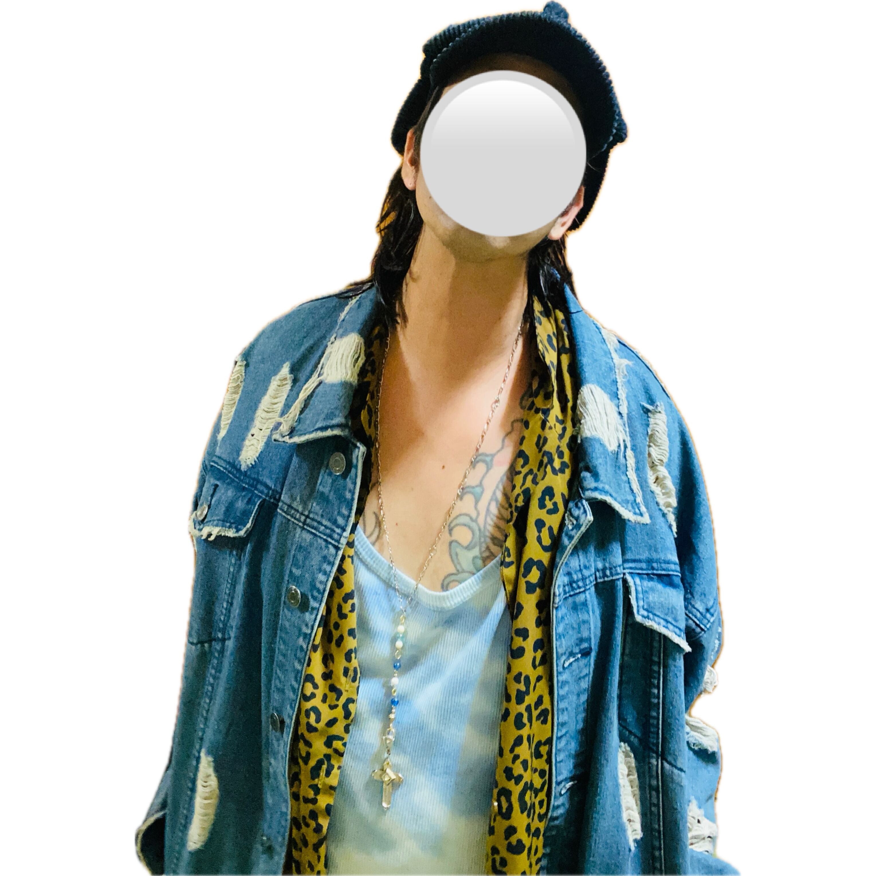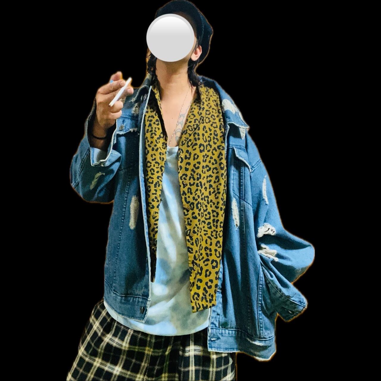 豹柄シャツ、タンク、チョーカー チェックパンツ