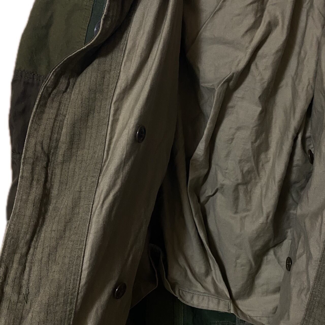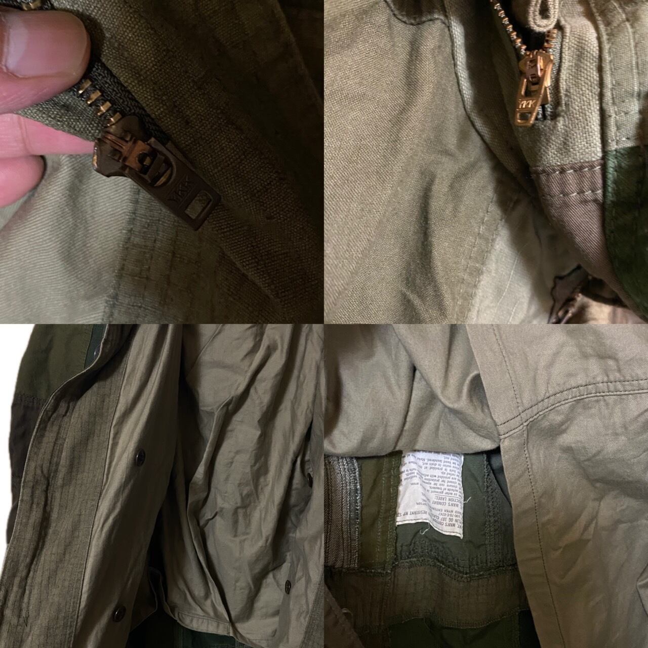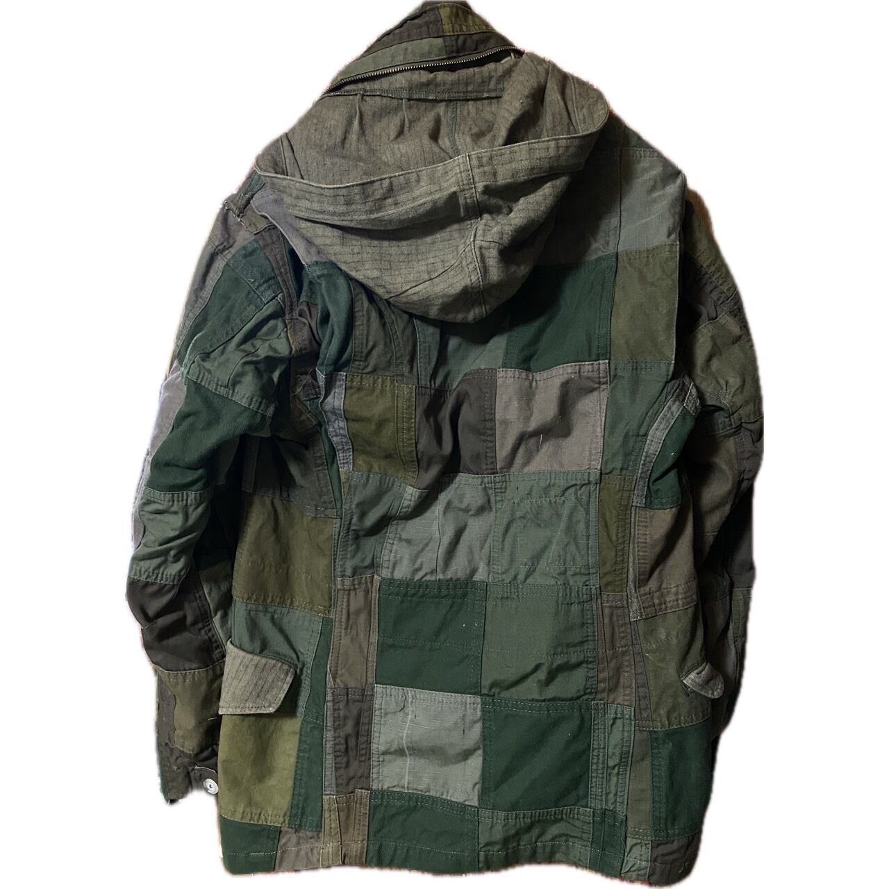 70-80s ミリタリージャケットや。シャツ全てバラして、一から、crazy、サイケパッチワークつくり、嘘でしょ??裏地まで、縫い目みせないよう、したてた