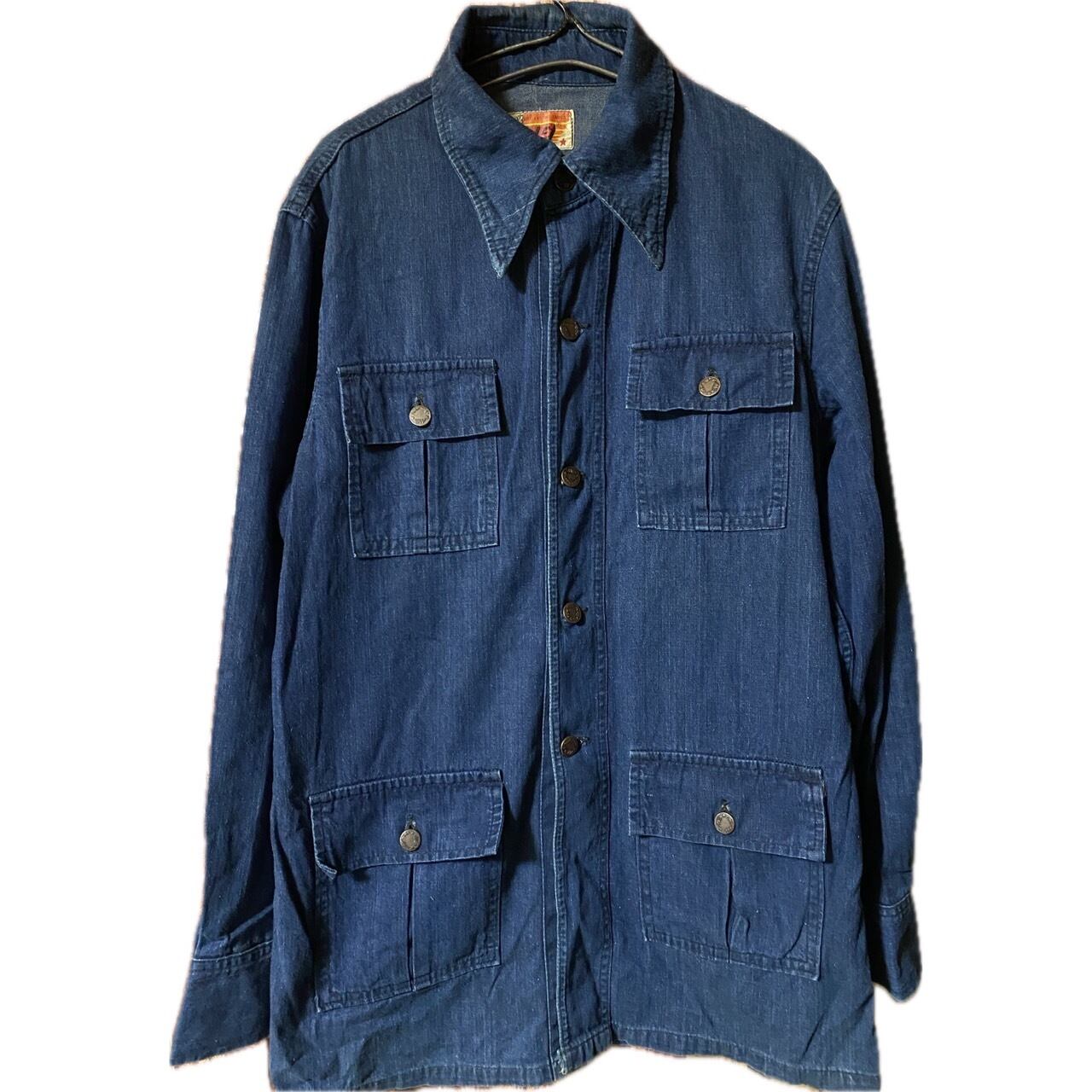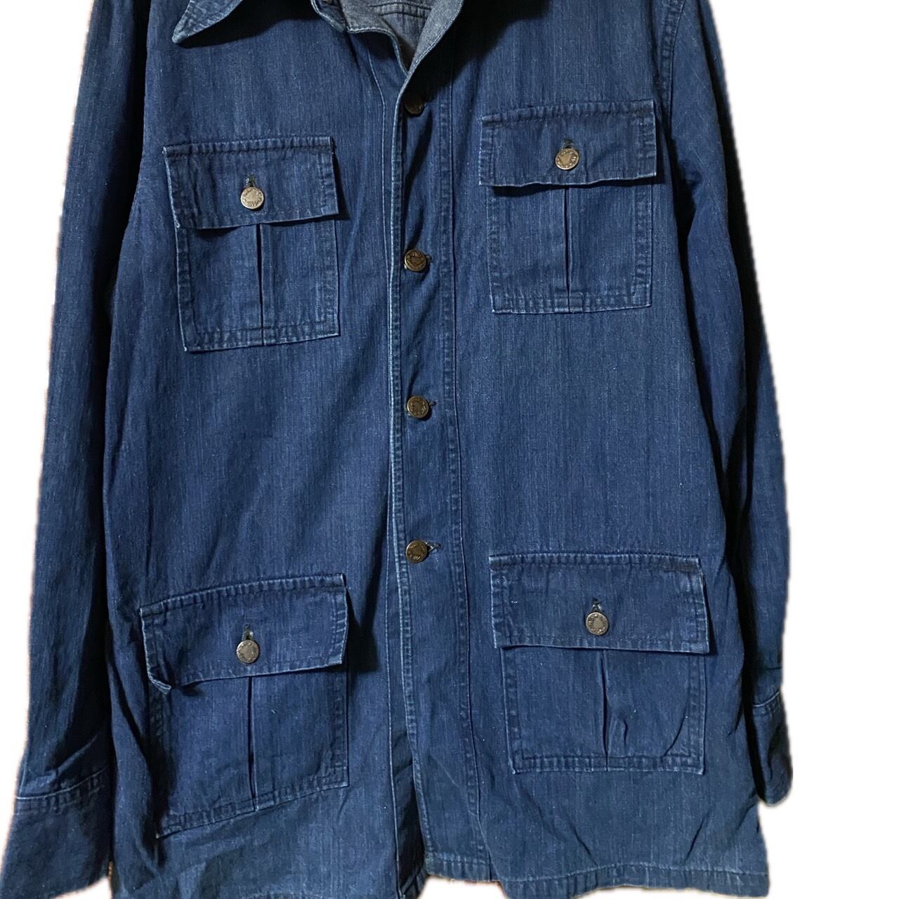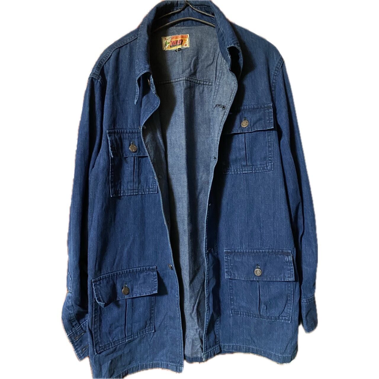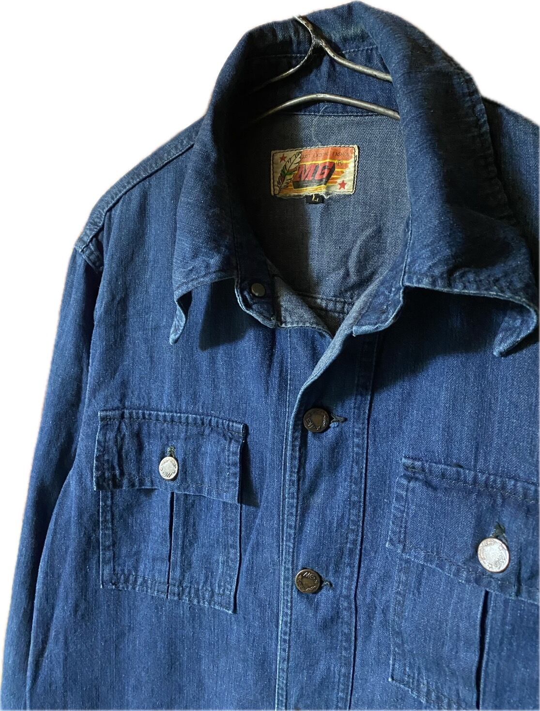 【MG】の、デニムサファリカバーオールジャケットです。60.70年代頃の商品で