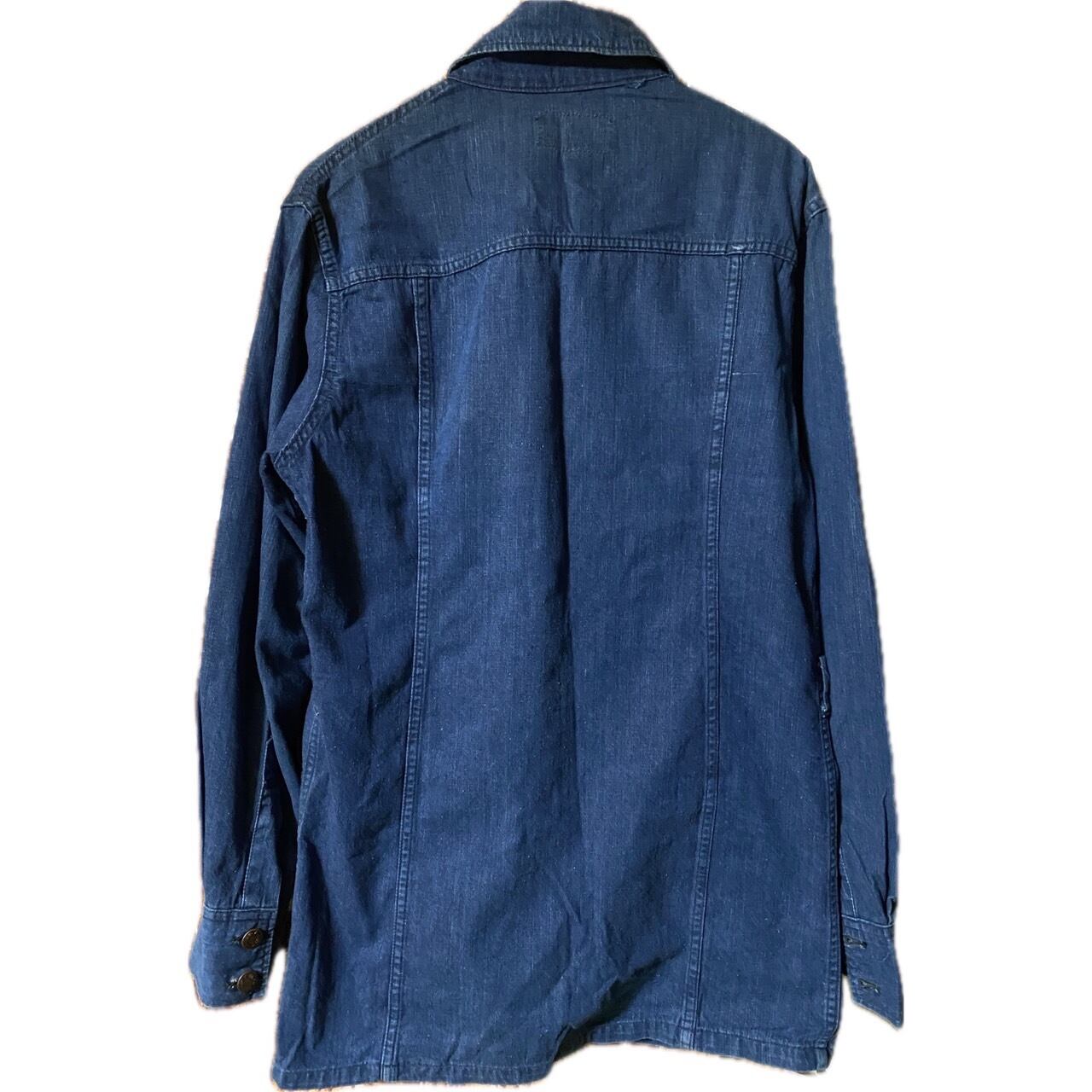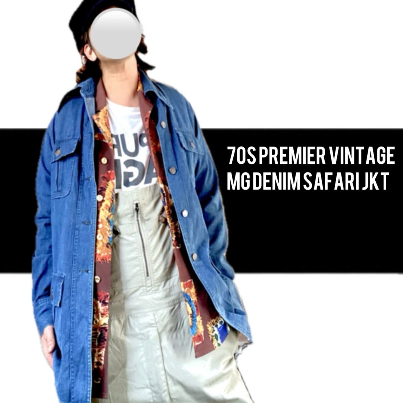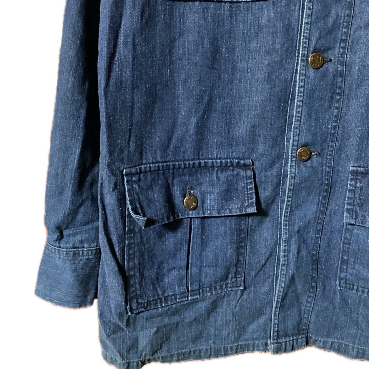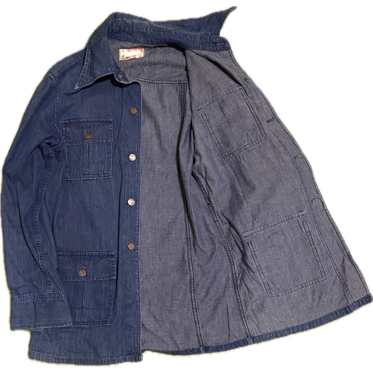 【MG】の、デニムサファリカバーオールジャケットです。60.70年代頃の商品で