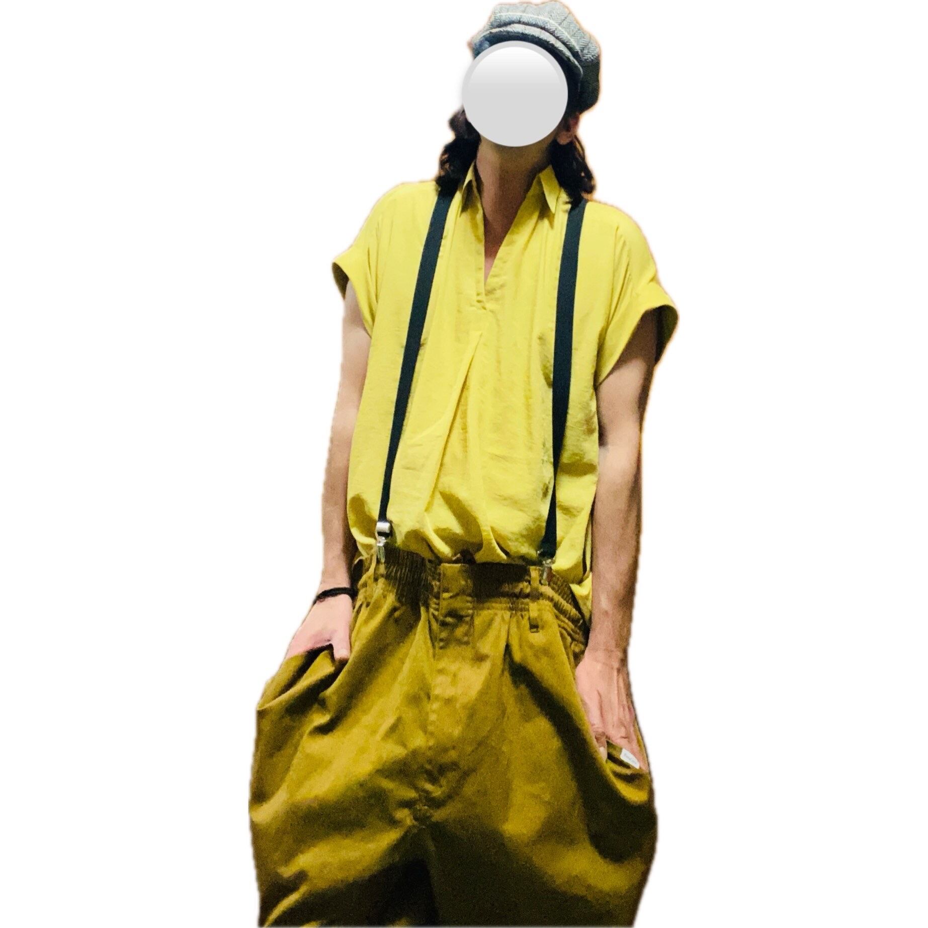 タフに、サスペンダーで、首野暮ったくないよう、