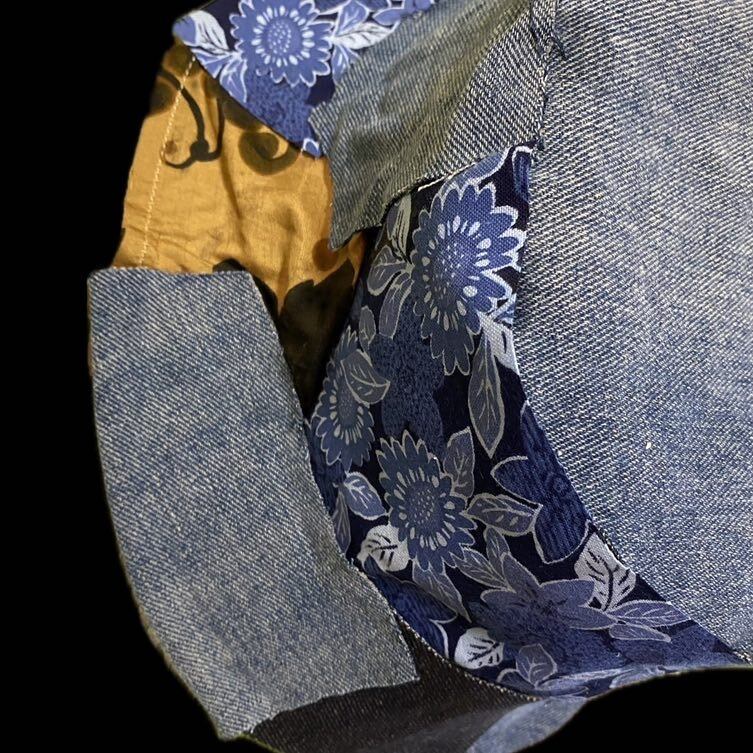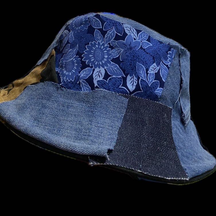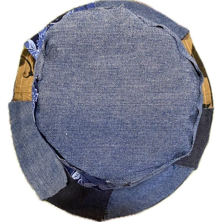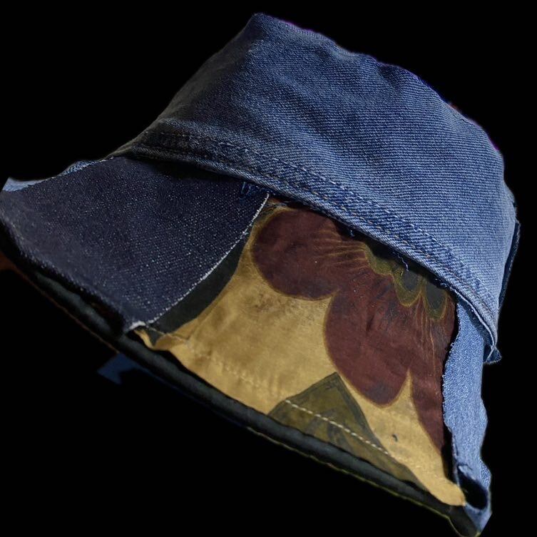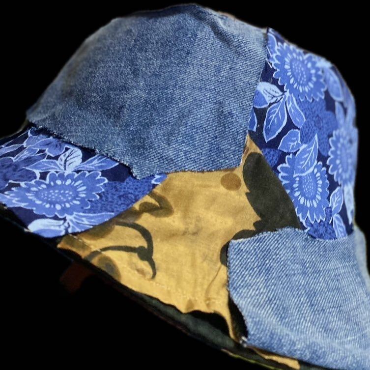 2000年ジャストのシルエットの最高なバケットハットを完全にフルカスタムしました。サイケデリッククレイジーパッチワークと言う技法です。丁寧に丁寧に1枚1枚施しておりますので、どの角度から見てもデザインが違うんです。なので飽きることがありません。さらに裏地に縫い目を見せないようにナイロンをやってますので、何ならリバーシブルでも使えるかもしれないですね。リバーシブル仕様では作ってないのですが、行けそうな感じです。