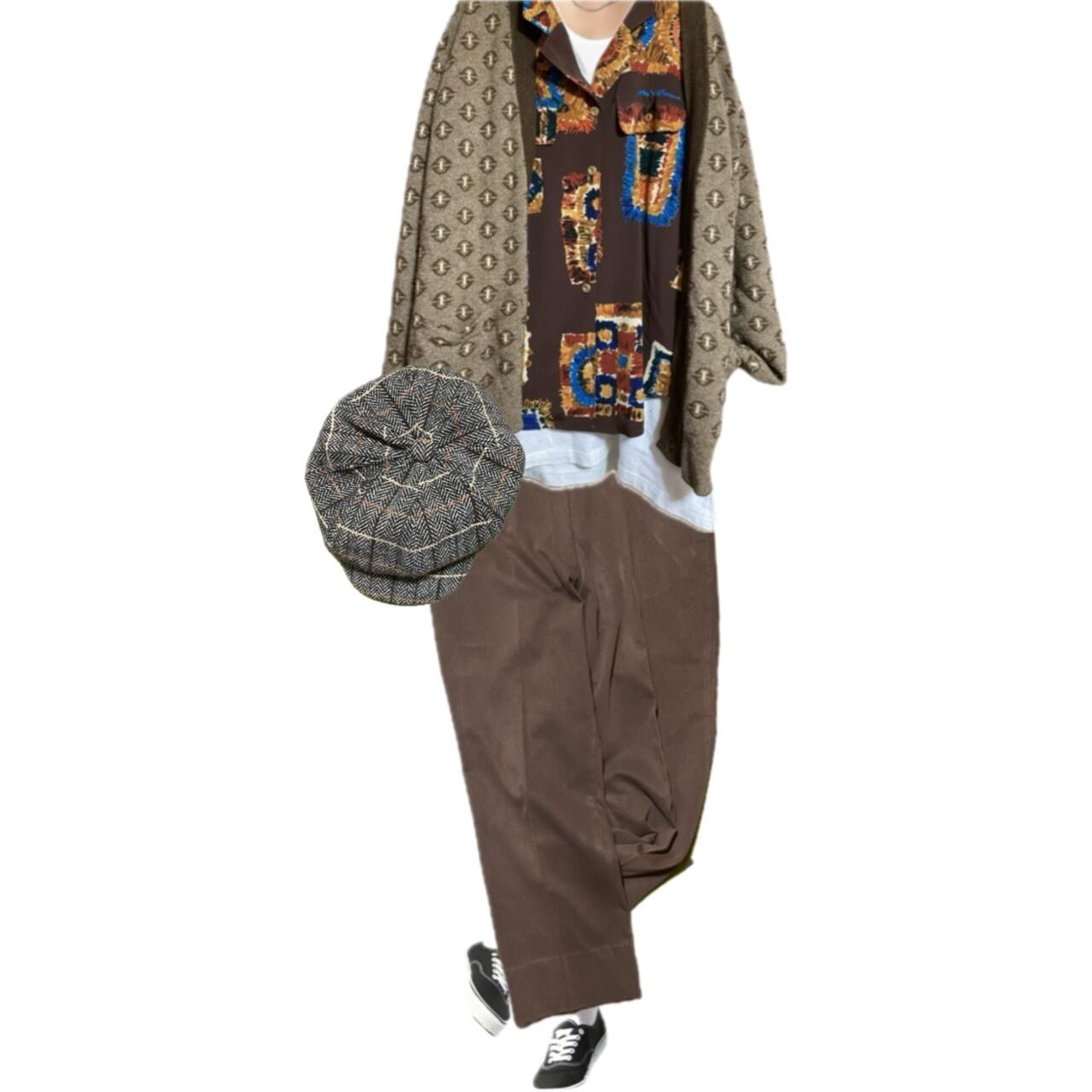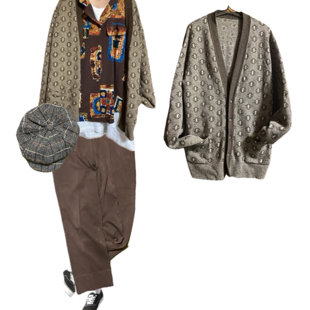 70s メリノmix geometry ゆるだぼ 総柄カーディガンXLまで、対応
