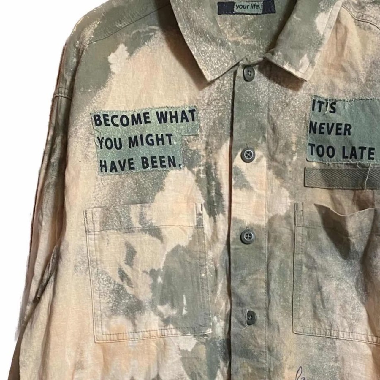 なぜフロントにアートを施すかを説明させていただきます。もしも夏、秋、春だったらこれ1着で良いですよね。でもどうせこんなにかっこいいシャツなら冬とかも楽しみたいじゃないですか。