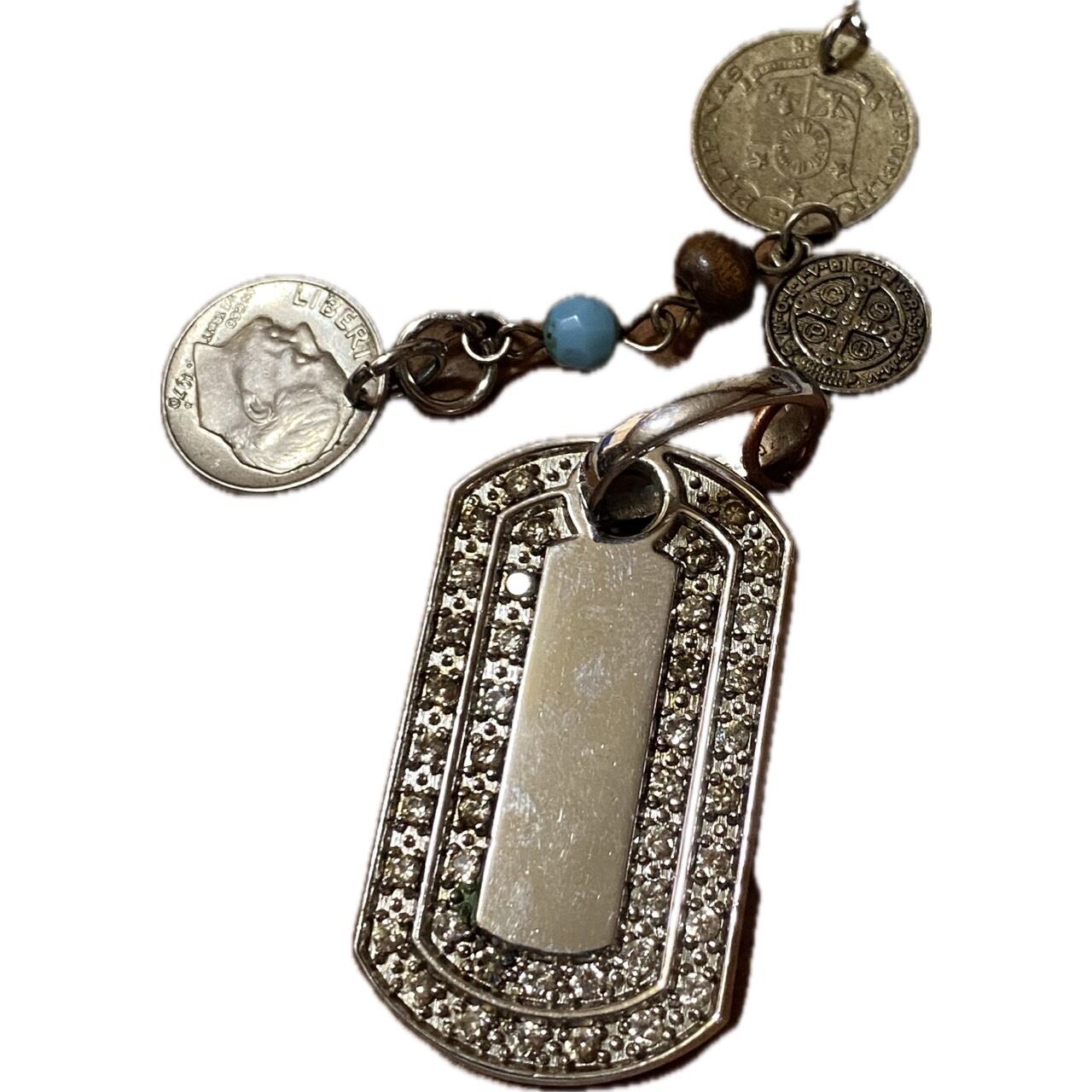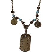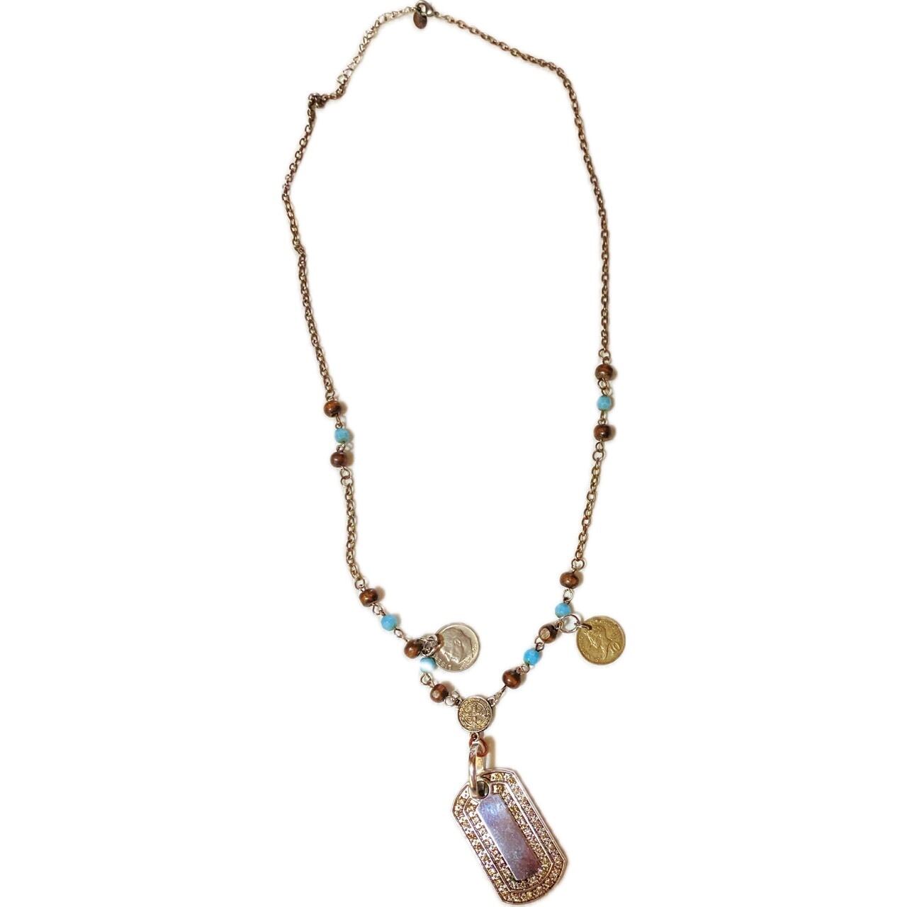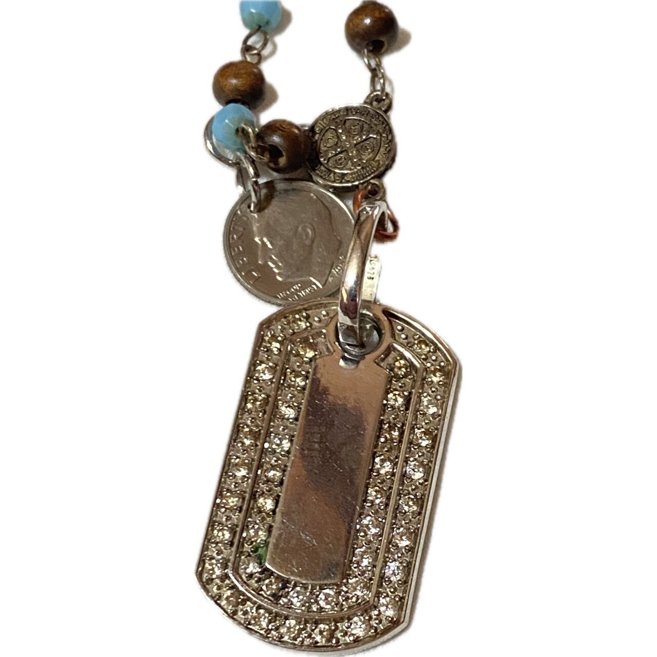 975シルバー、留め具や、メタル50/50プレート、アンティークウッド、ターコイズ、チェーン、エスケープのつかって、つくってみました