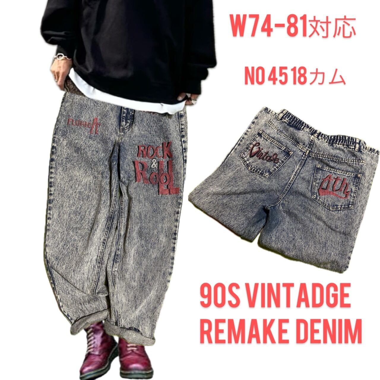 90s リメイク 世界に1つ、70sリバイバル ハンドアートデニム W74-81