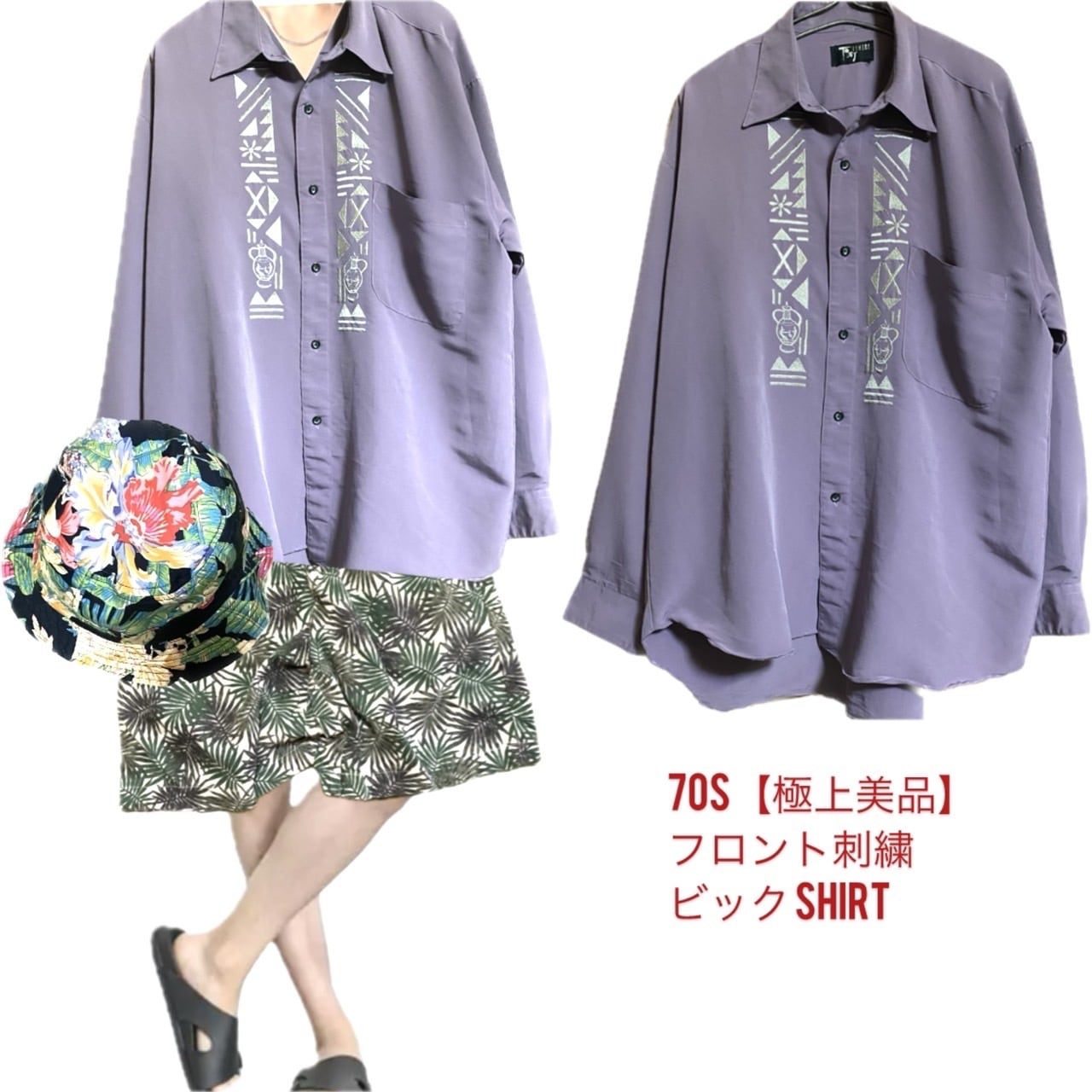 70s 極上美品 物価対策、大特価、フロント刺繍、ビックシャツ F