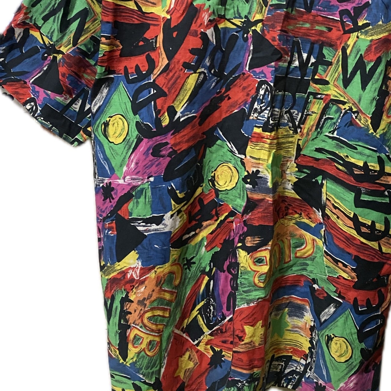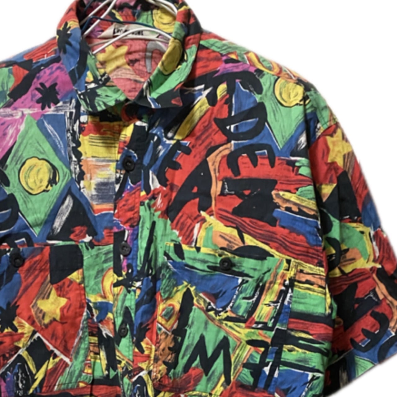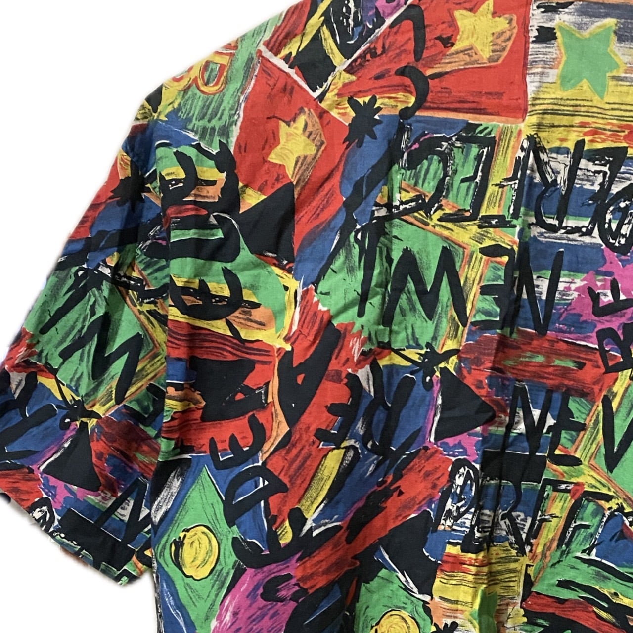 派手に見えますが、計算されつくしたサイケデリックな柄と70年代のシルエットを引き継いでいる80年代初期のシルエットがオーバーオールなどとコーディネートする時もきれいに決まり、さらにハーフパンツとの相性抜群です。