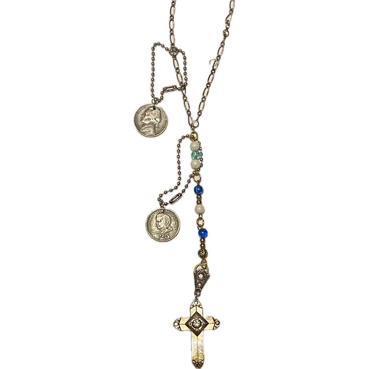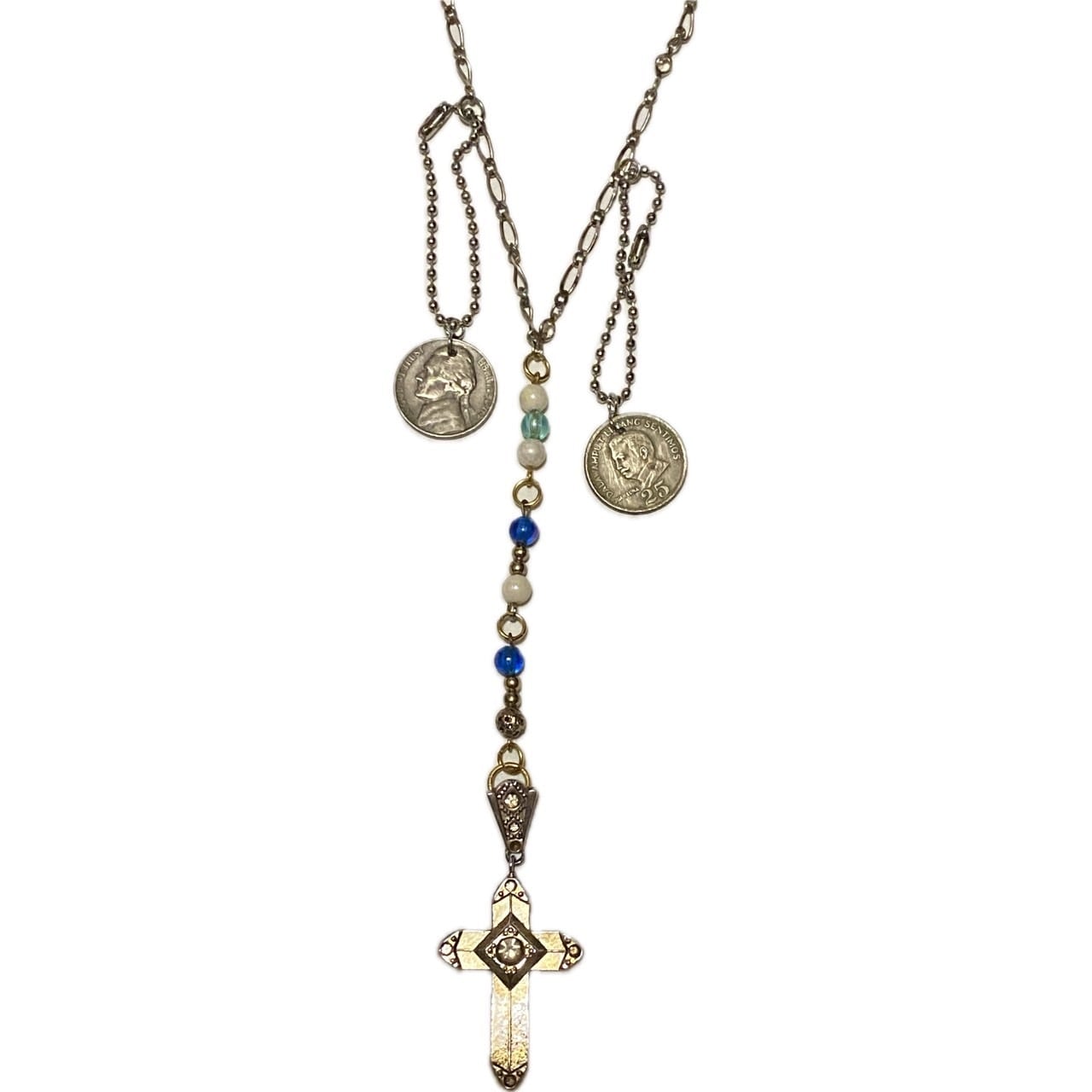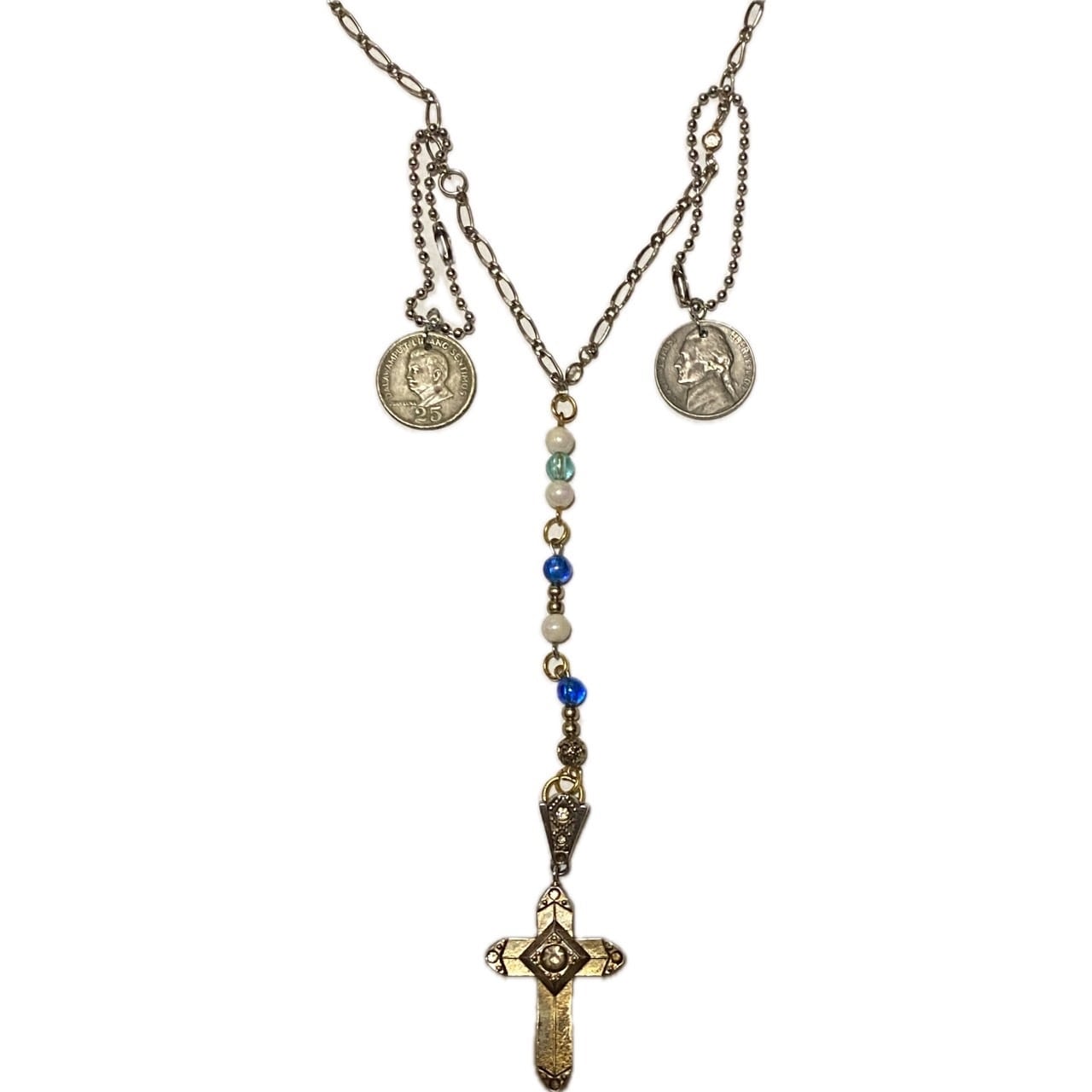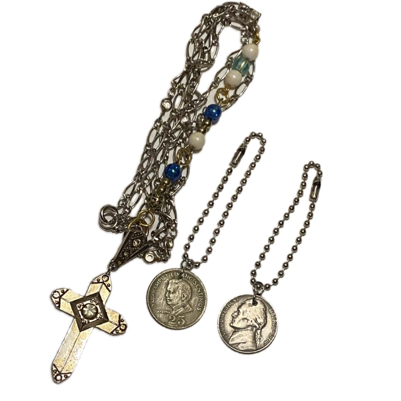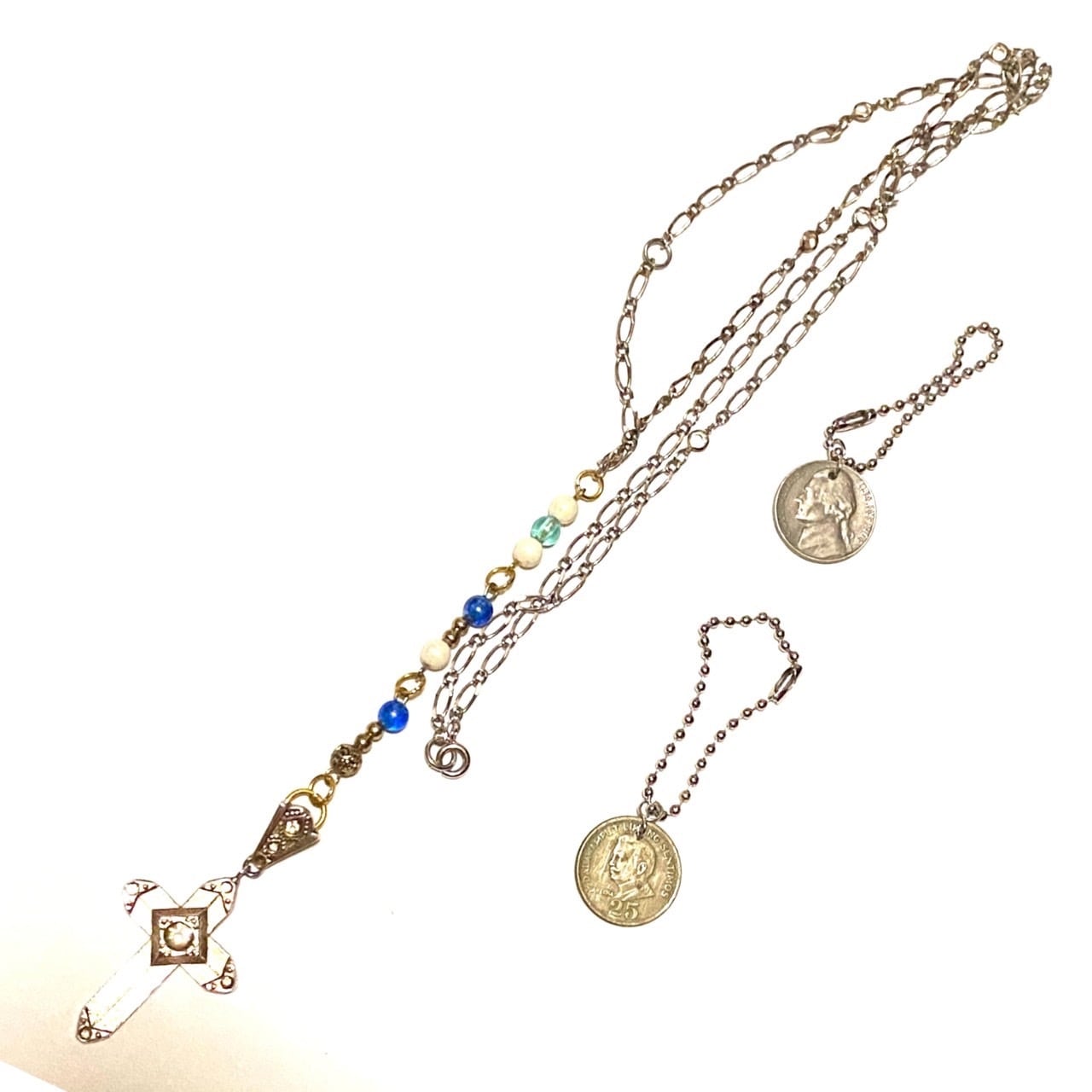 Trident 海の神ポセイドンの槍を、ロザリオと、vintage コインで、作り
