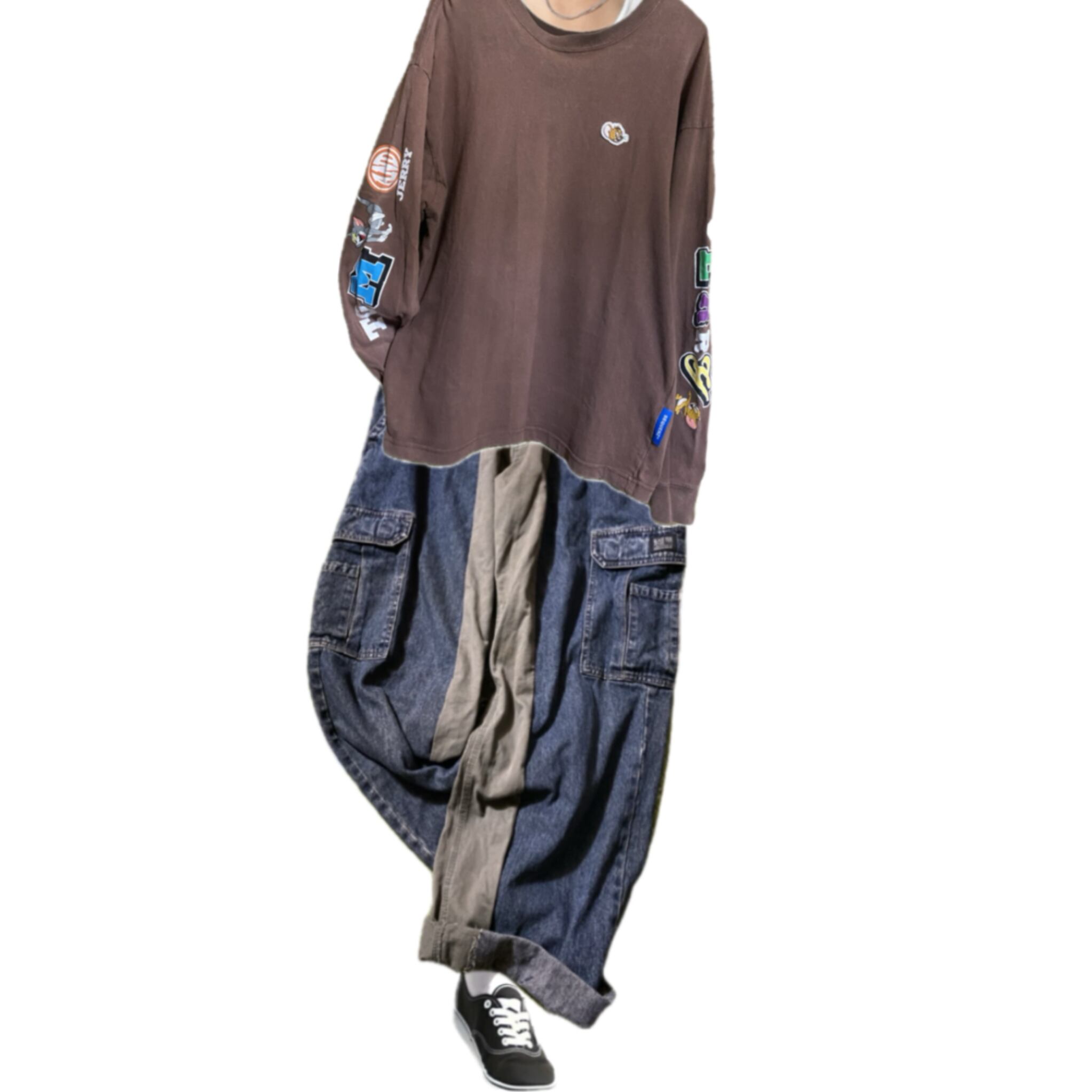 アメカジワークストリート、この3点を主軸に展開するSQNZ と tom&JerryのコラボT しかも、double nameなんで、完璧に限定商品ですね。ロングTシャツって年中活躍するし、袖に可愛いのに、センス抜群の、プリント胸に刺繍ワンポイントと、ドンキ回しを考慮された作りによるダブルサイズが最高にカッコいい、しかも、このブランドのダブルネームラインは、アッパーラインとなります。