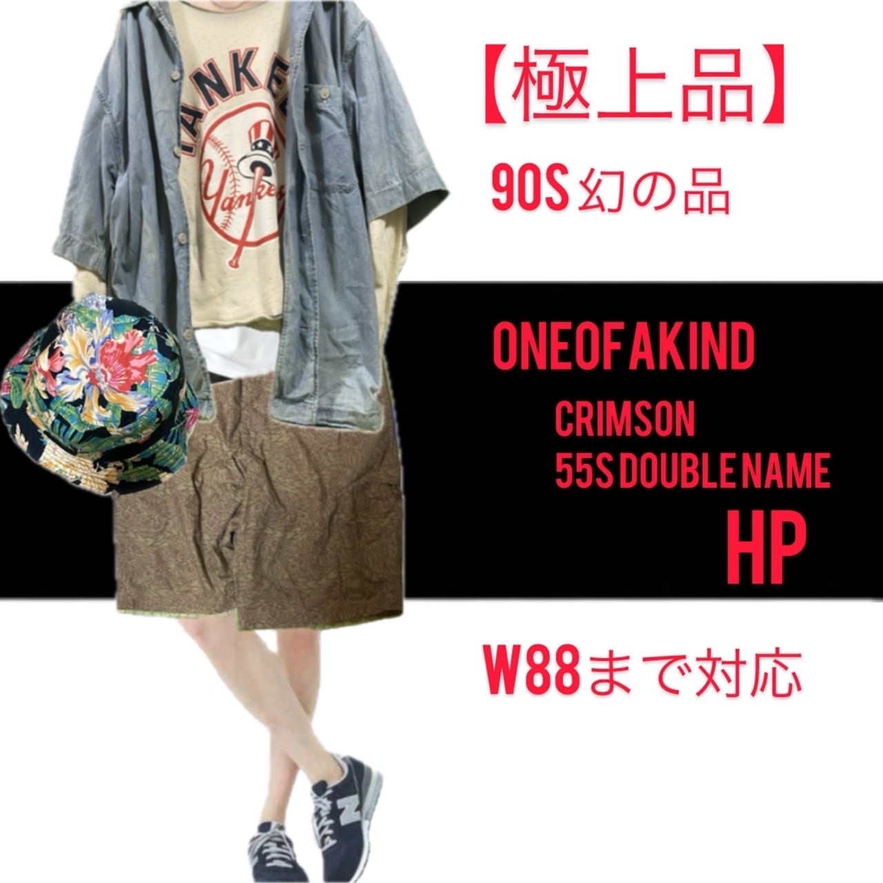 90s 極上美品Crimson 55s ダブルネームリミテッドモデルハーフパンツ、