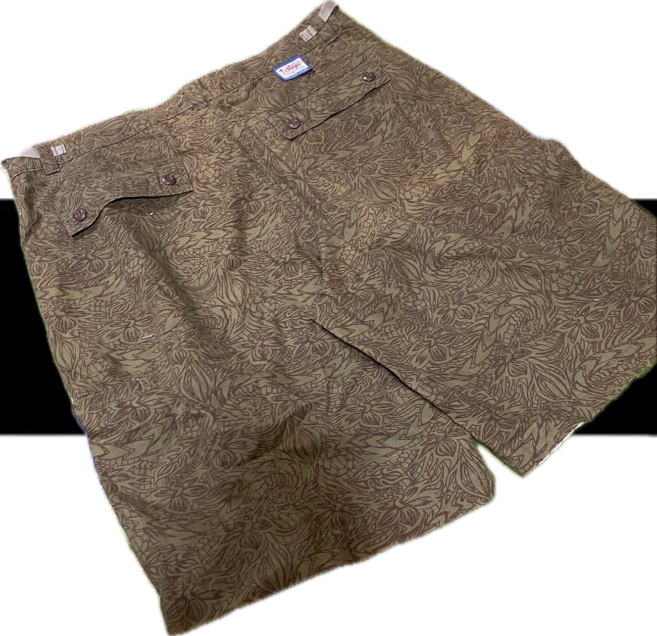 様々な技術のアートを惜しみなく施した総柄のハーフパンツです。