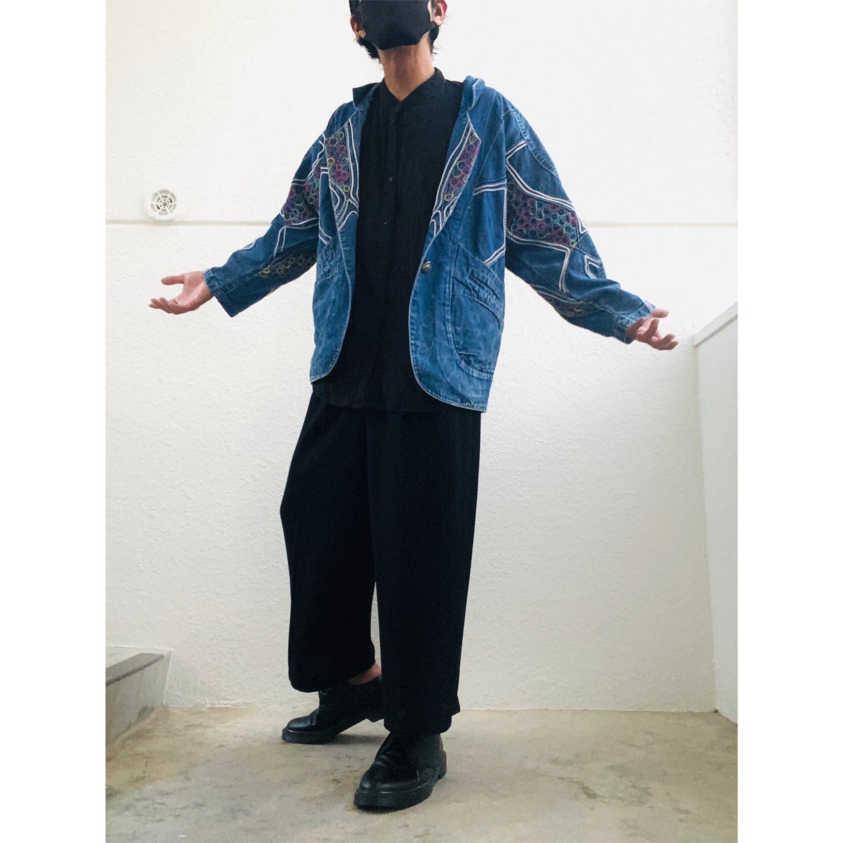 80s バブル期の止まる事を知らない、人気上昇のvintageです、この時代のは、正直クオリティの高さが素晴らしいです、先ずBOXバルーン風なやったりデザイン、惜しみ無く施されたチェーンステッチ等の刺繍に何色使うんだって驚きの系の数、vintageワンボタン、です、正直此方この価格で迷ってしまっては、古着好きとは、言えないと言っても過言では、ございません、完全一点もの 入手不可です、この刺繍糸だけでも、軽く当店の販売価格位の値段する、半端ない作り、個性的ですが、ゆったり、着用で、かなりオシャレになります、
