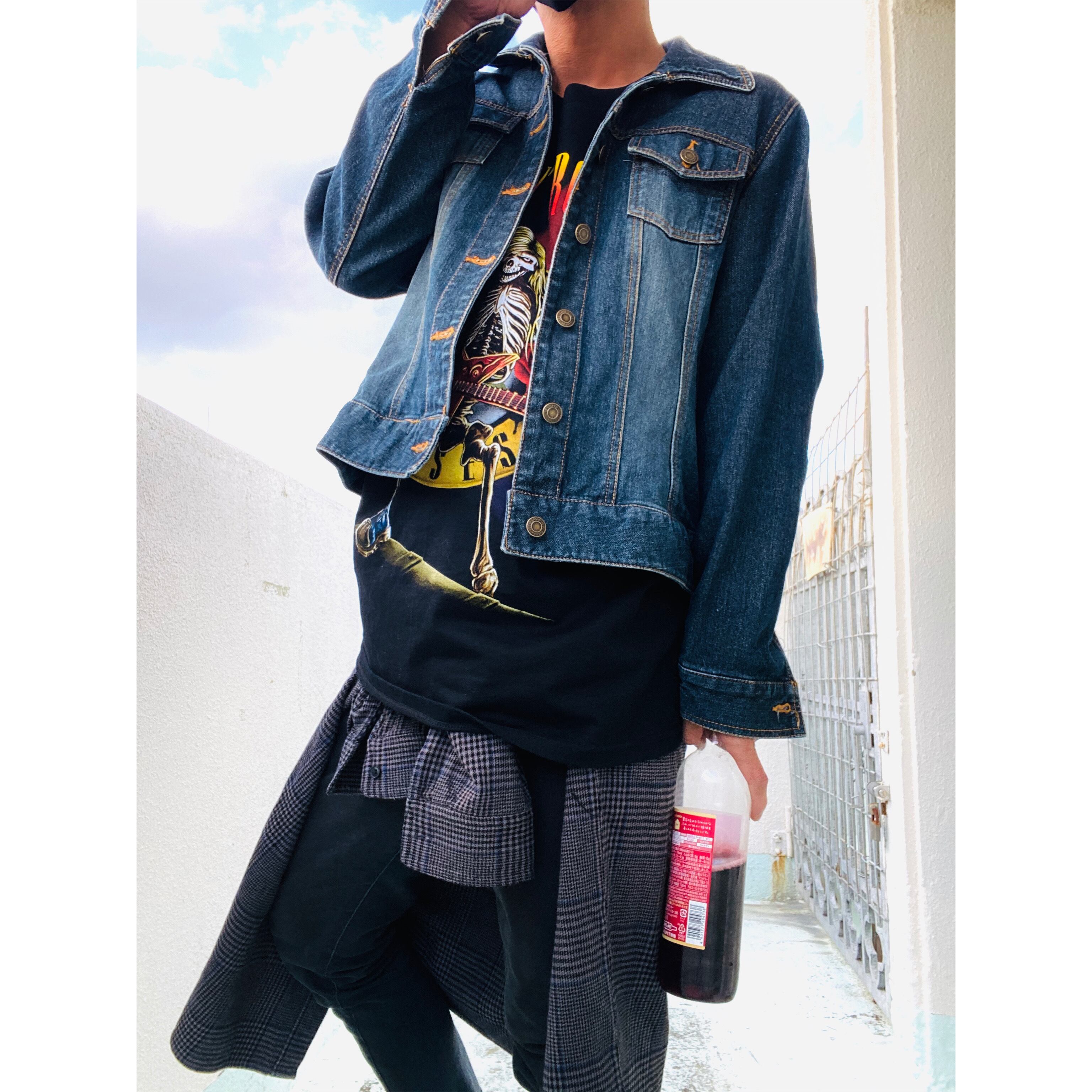 フロントvintage加工が、お洒落すぎるデニムジャケットを軽くレイヤードきめて、スッキリまとめれば、ロック、グランジ、アメカジ、武骨、バイカースタイルなどなど幅広く対応します!!
