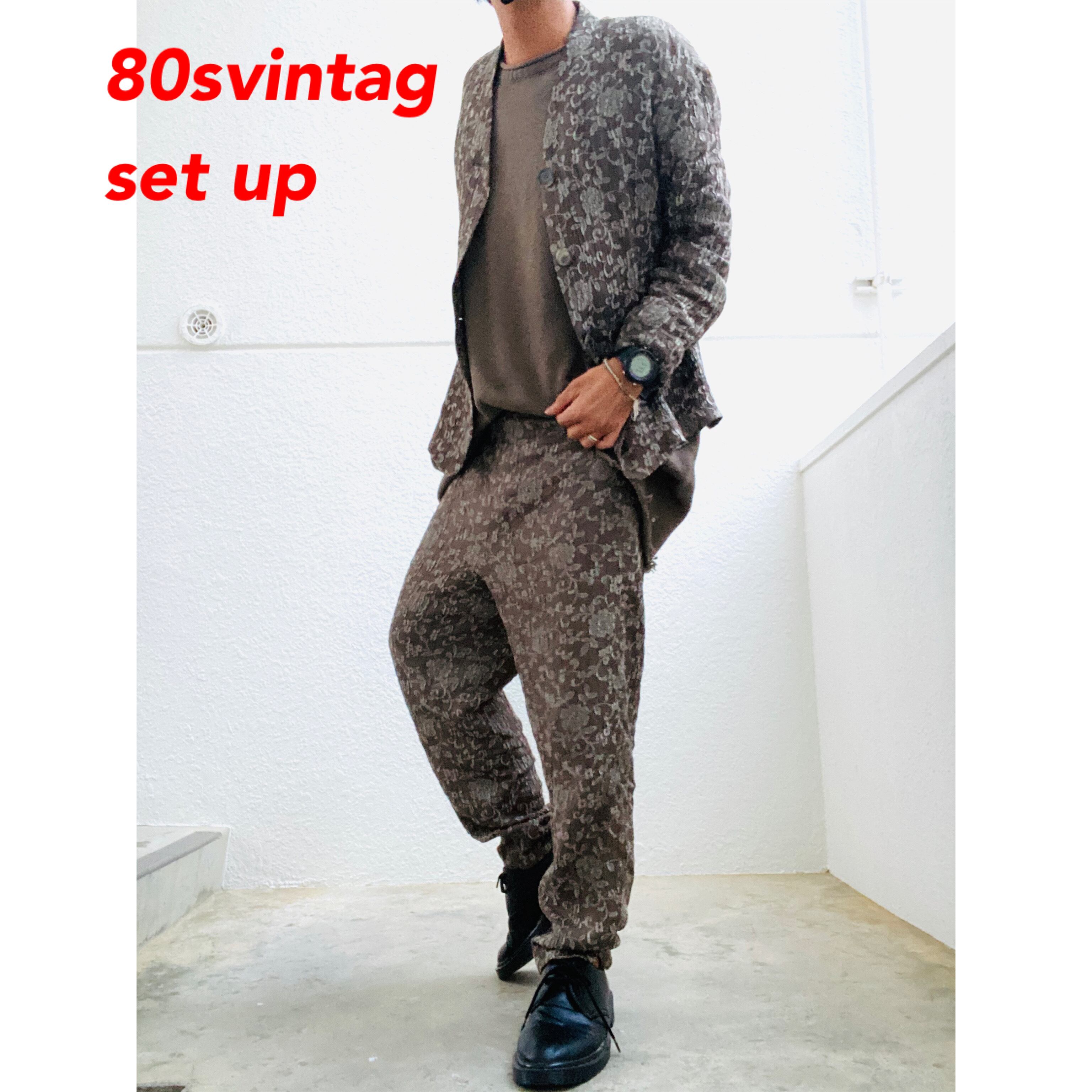 80s 希少 高級素材 裏打art 深襟ノーカラーset up