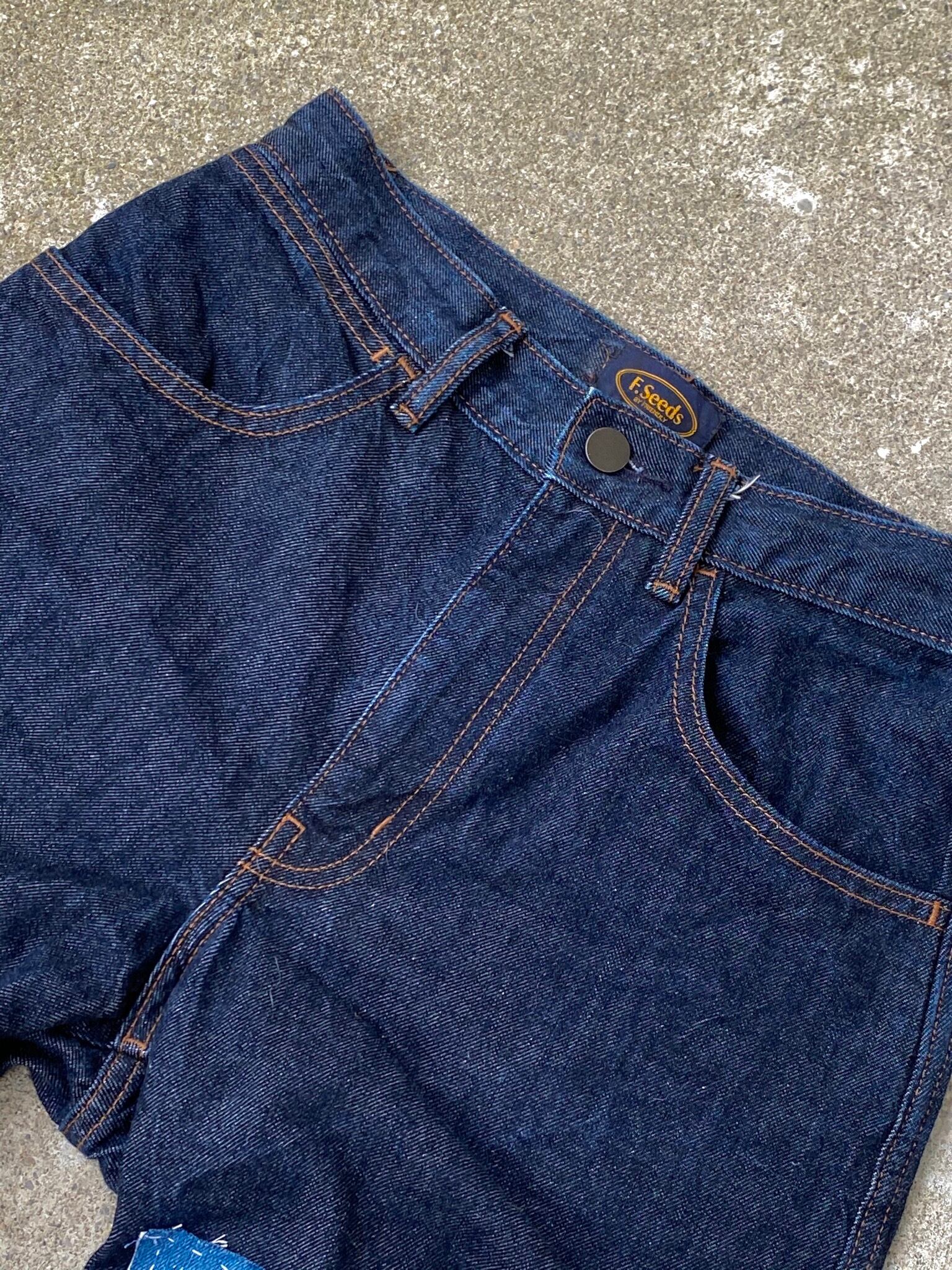 00ちょいの、vintage使用、シルバーYKKが、その証四つ切り部分に、使った布も、ハギレもありますが、ヒッコリーは、vintageボトムから、取りました。リラックス感のある、シルエットに、タックインも決まる、トレンドの、ウエストシルエット、端ミシンでホツレ止めしてるので、クラッシュ感が、履きこめば、バランス良い位置で止まる貴方だけの一本に更にそだてれます、更に髭うち軽くしたので、履き込めばどんどんカッコ良くなります!!後綺麗めな、カラーのデニムに、クラッシュパッチも作り味と、トラッド、モダンカジュアルに仕上げました、勿論画像ご覧下さい、クラッシュ加工、雑な既製品のって、バリバリ破れてイラついた時たいです??