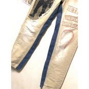 世界的デザイナーブランドを、2本、壊し合体、あとは、クラスト風ボトムにするため、レギュラー古着のボトムを再構築して3本も使って作成しました。自信作です。染める、縫い付ける、様々な技法を使った1本。さらにトップスのカットさんも今から販売開始しますが、のオリジナルなのであなただけのコーディネートになります、