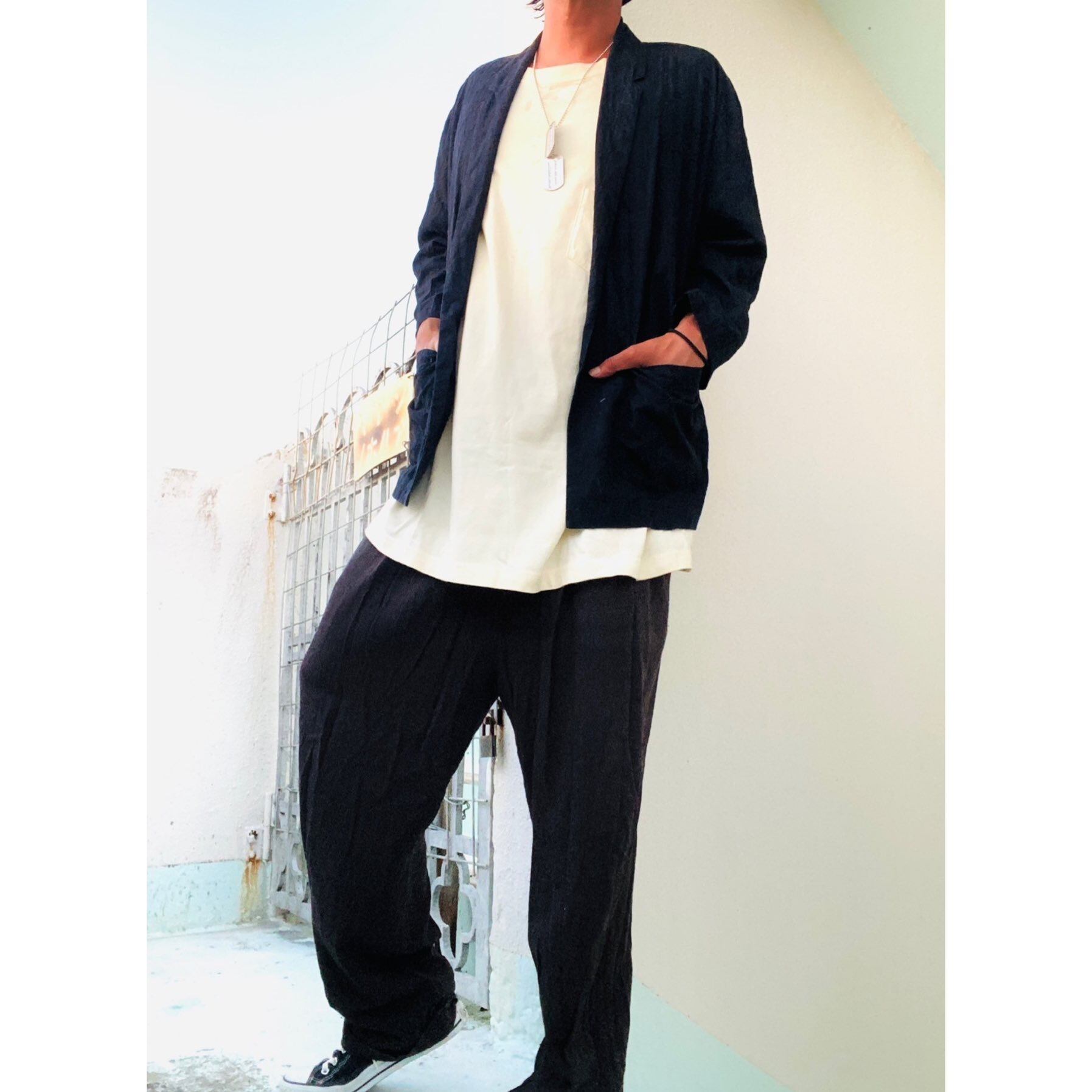 先ずコーデ、秋、冬、春、意識ですが、此方夏も行ける素材です^_^ハイブランドをマフィア風に決め込むオールブラックに、ワントーン入れる2トーンモードスタイル、