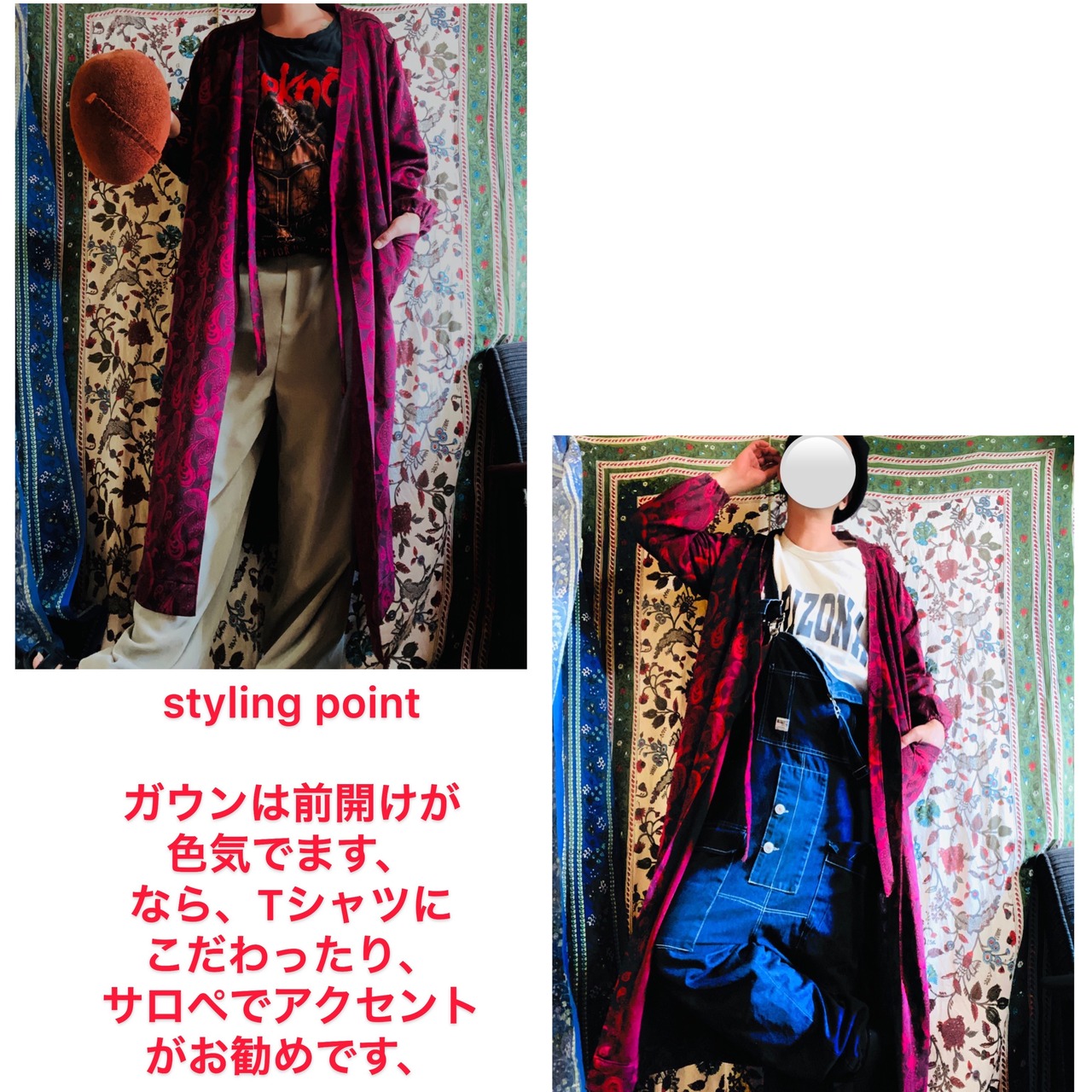 ガウンって、さっと羽織るだけで、カッコいいですが、おしゃれな方は、率先して、タウンでも、見せつけます、後化繊か!って方へ、