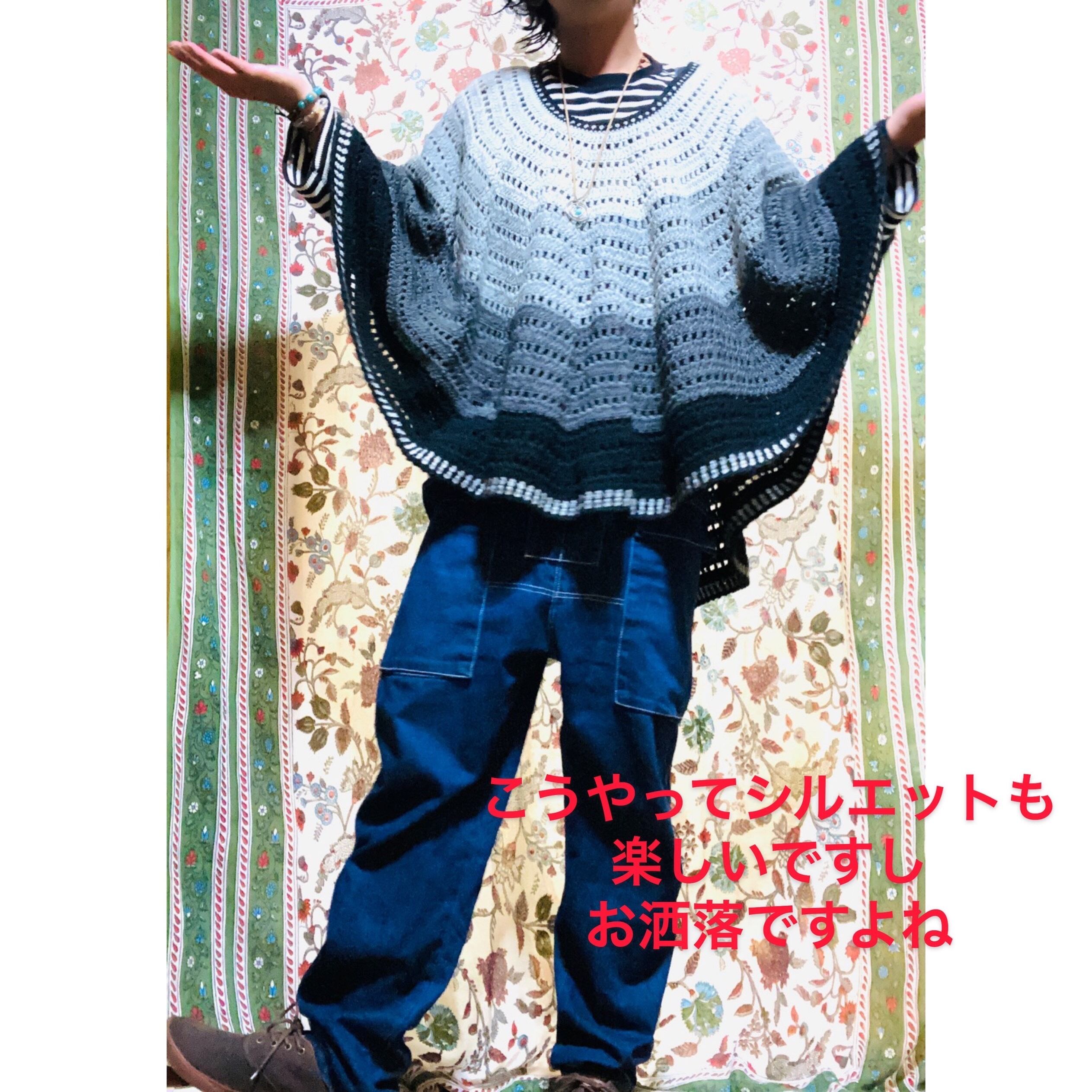 美品 当店限定 90s 職人作成ハンドメイド ニットポンチョ
