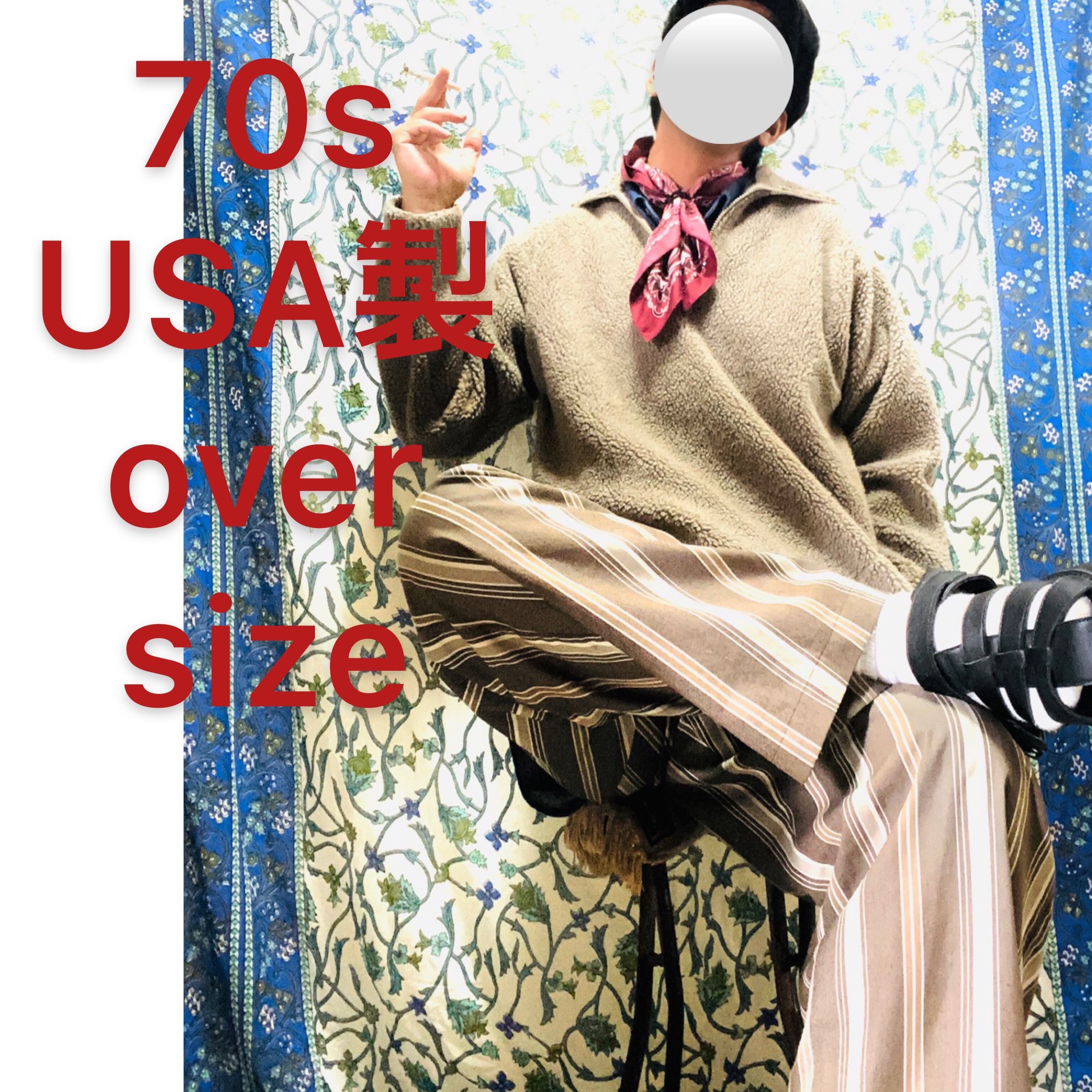 70s USA製 トレンド直撃、ボアプルオーバージャケット ハーフzip