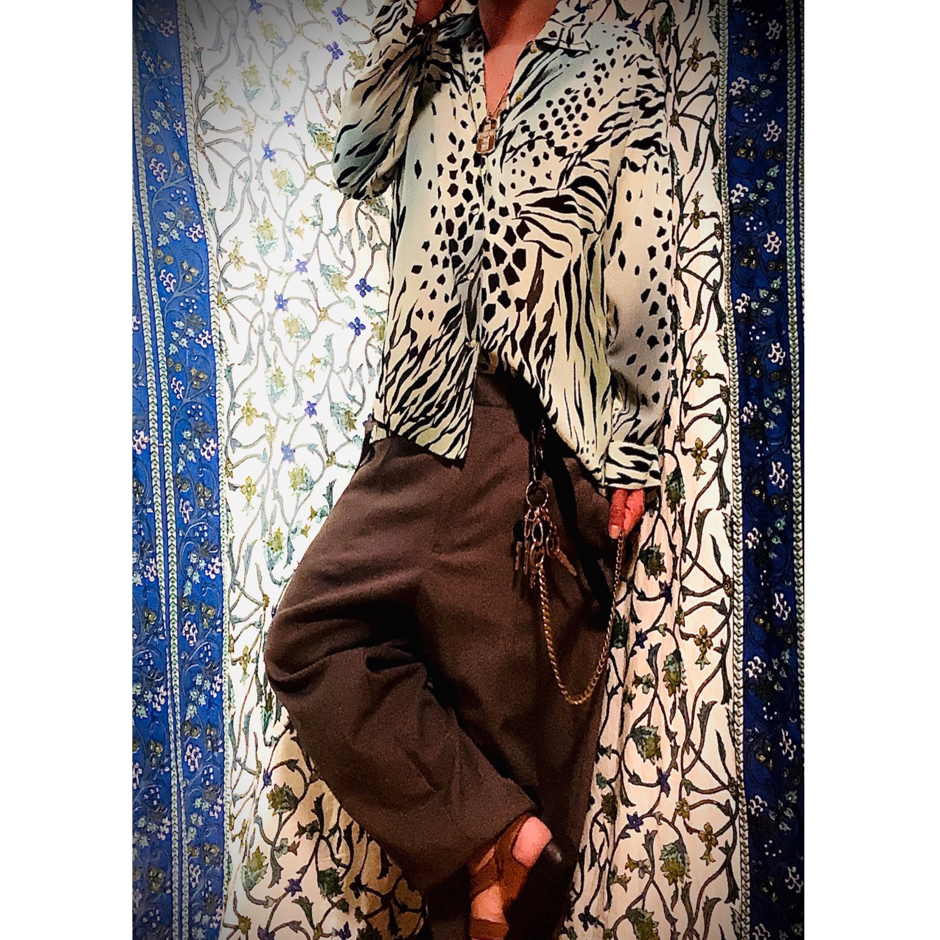 70s vintage 美品 アニマルグラデアート 開襟 シャツ レオパード
