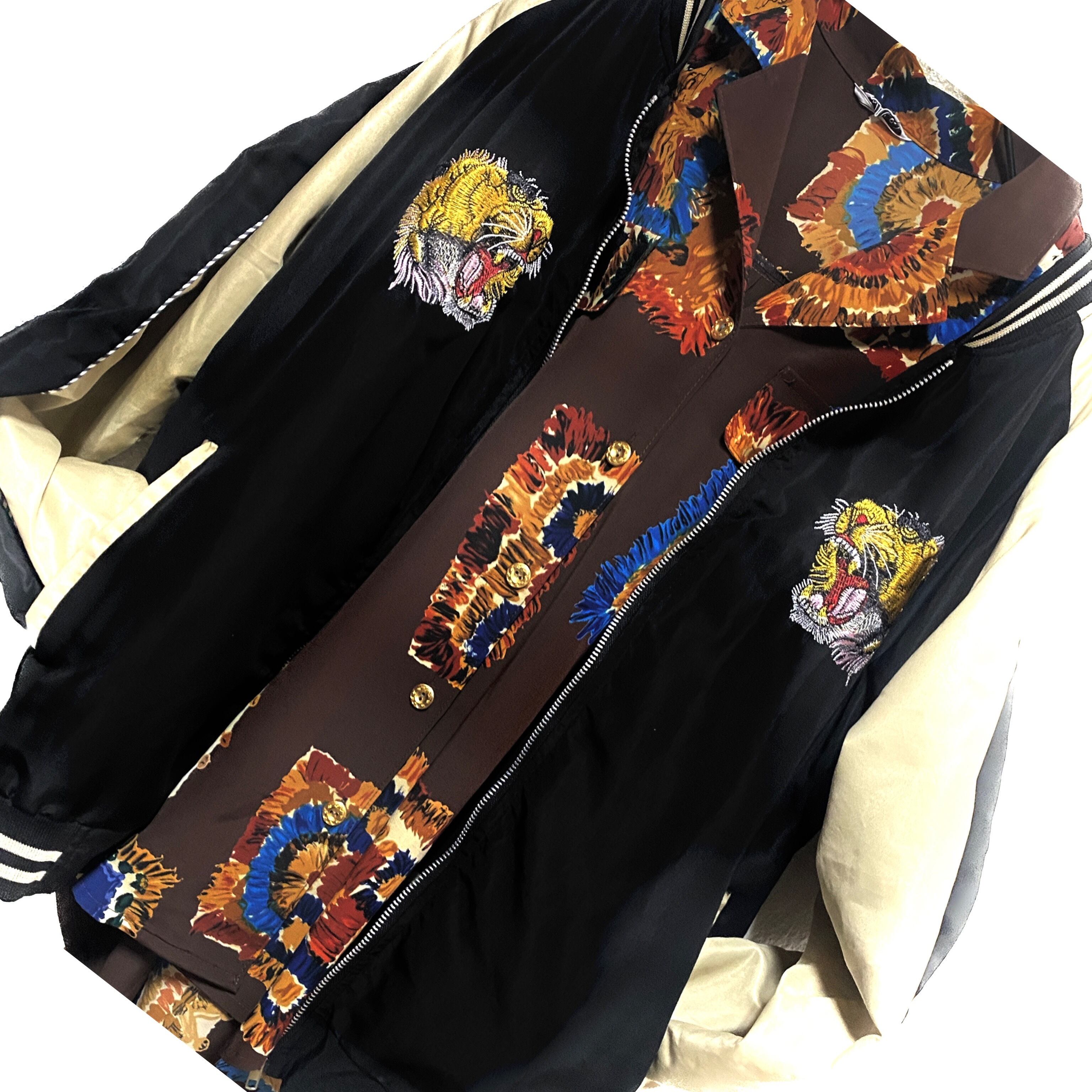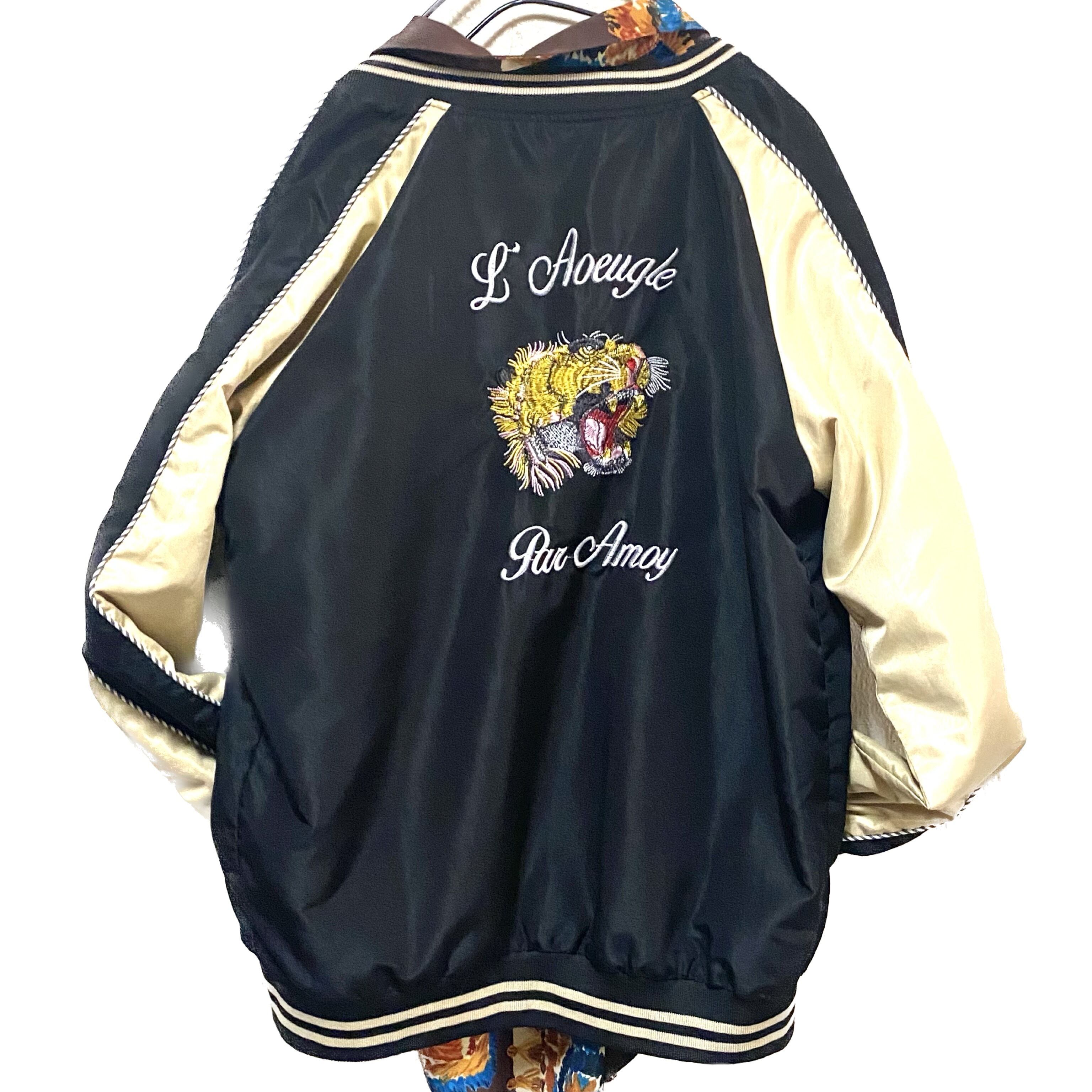 90s 非売品 中綿無 サンプル 美品 虎 マッドサテン スカジャン 黒