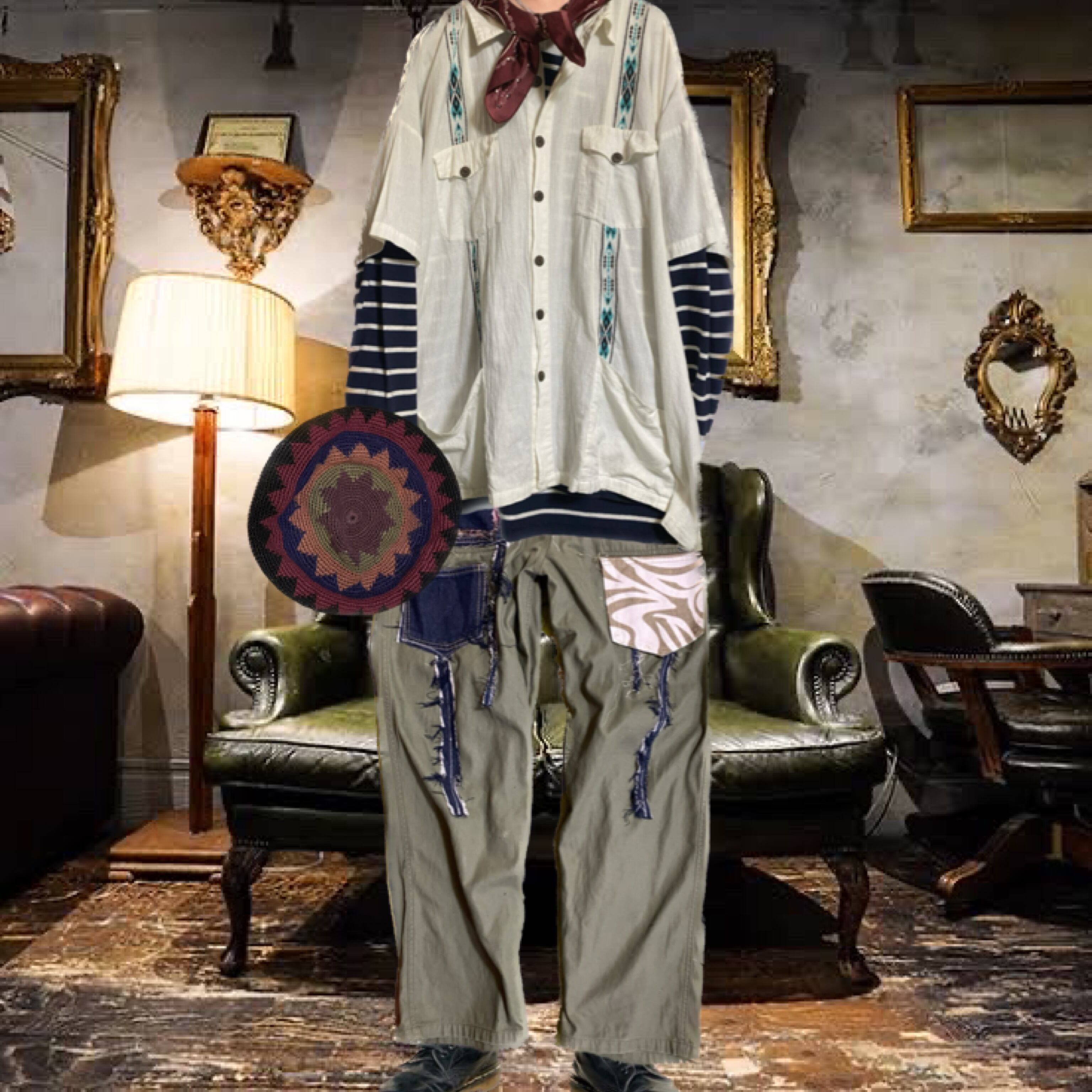Guayaberaシャツにハバナデザインの世界に一つのシャツ!!マルチに活躍かつ、重ね着できるのは、ビックサイズだから、です。